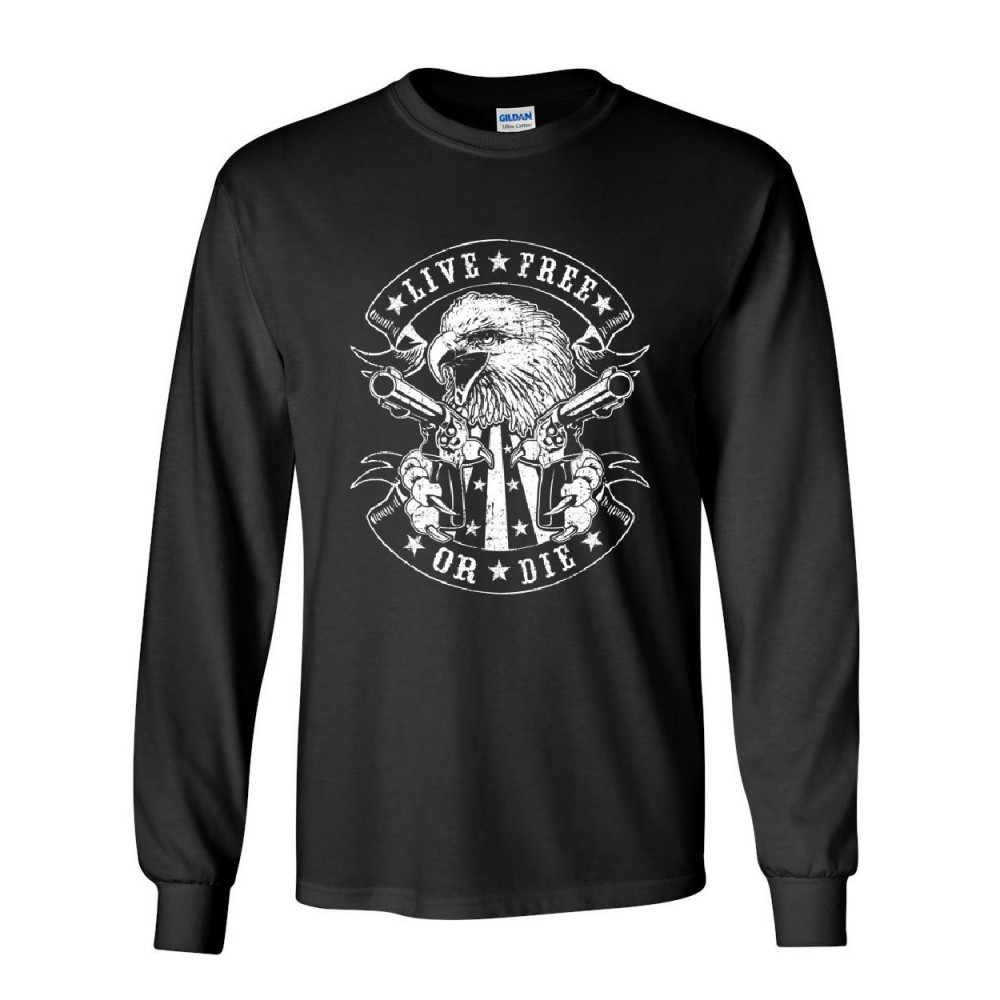 LIVE FREE OR DIE long sleeve t-shirt eagle biker 2nd amendment american flag tee black