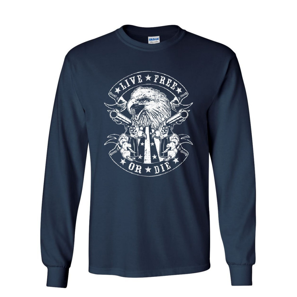 LIVE FREE OR DIE long sleeve t-shirt eagle biker 2nd amendment american flag tee navy blue