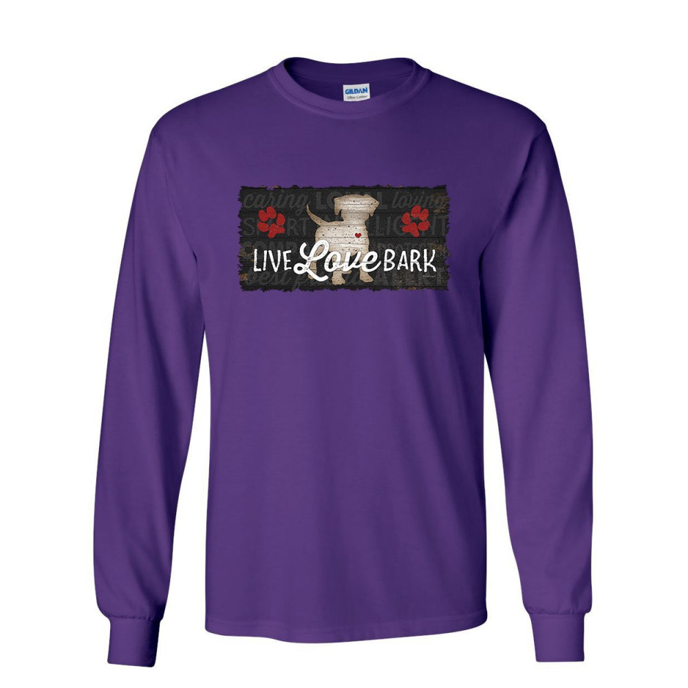 LIVE LOVE BARK long sleeve t-shirt cute dog puppy doggie paw wiggle pet woof tee purple