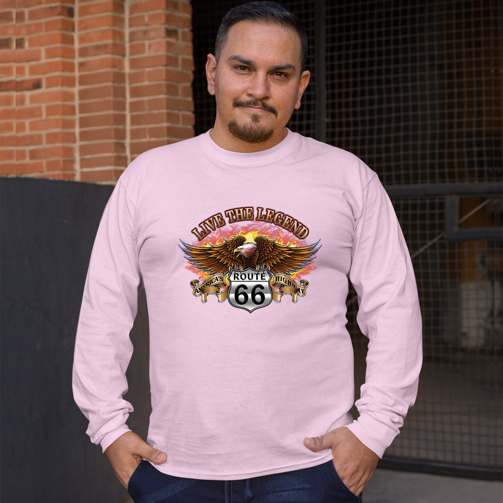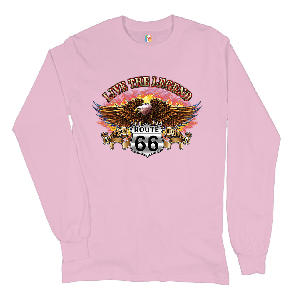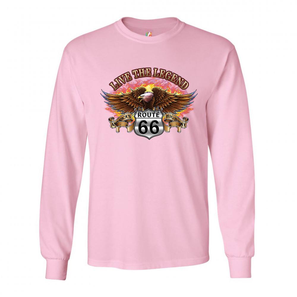 LIVE THE LEGEND AMERICA'S HIGHWAYS long sleeve t-shirt route 66 bald eagle pink