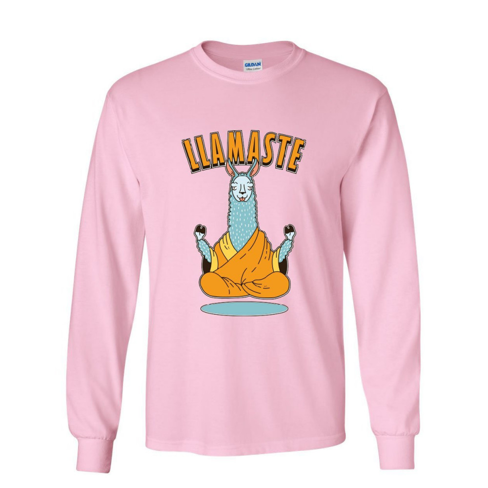 LLAMASTE long sleeve t-shirt funny yoga namaste llama peace pilates lotus om tee light pink