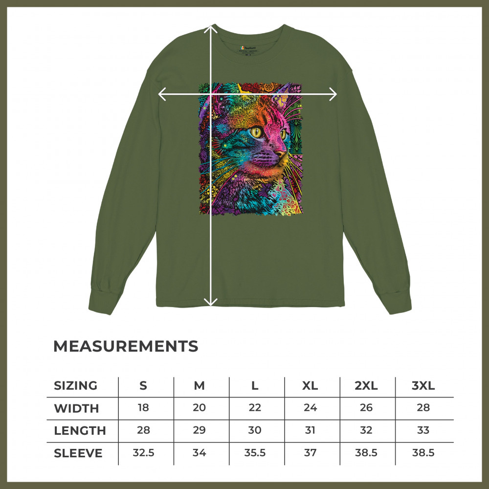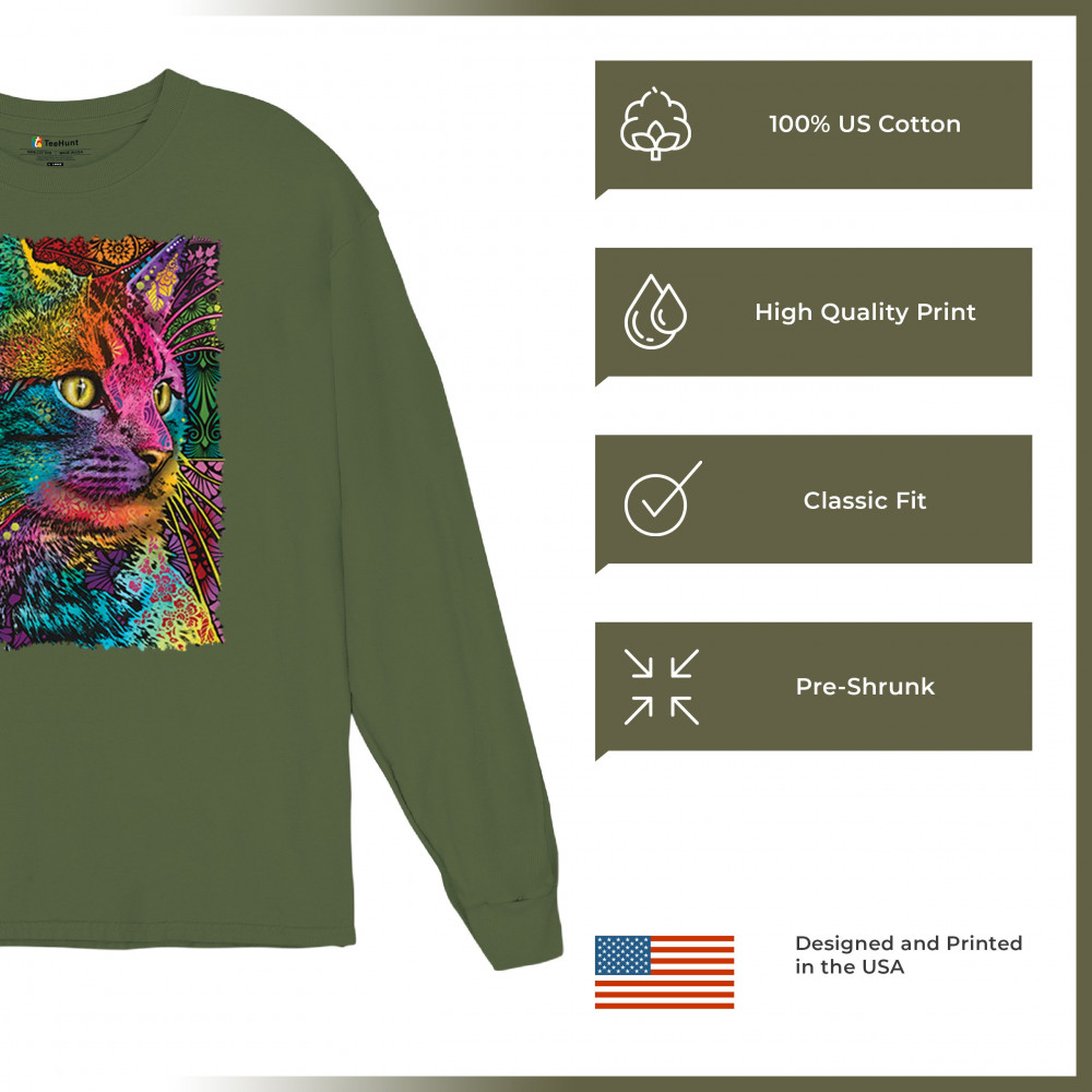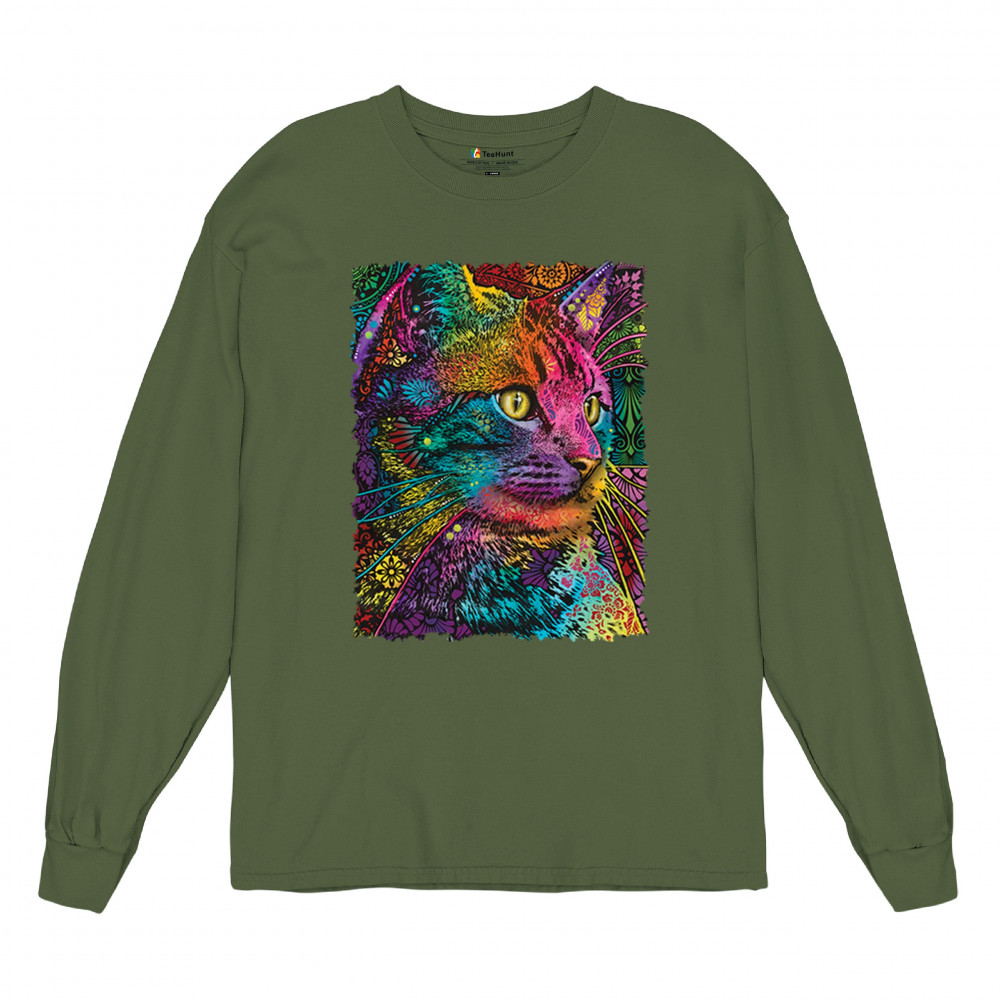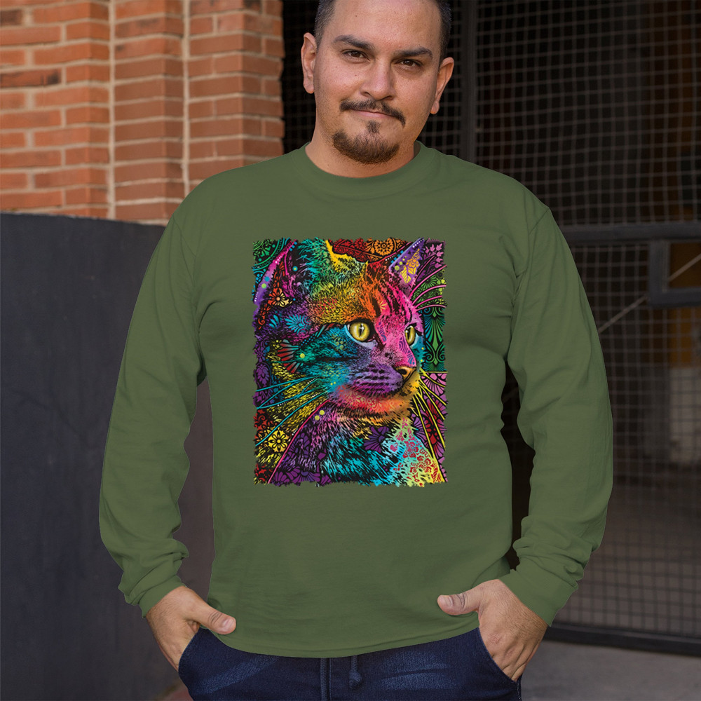 LOVABLE CAT long sleeve t-shirt dean russo colorful felis catus pattern art military green