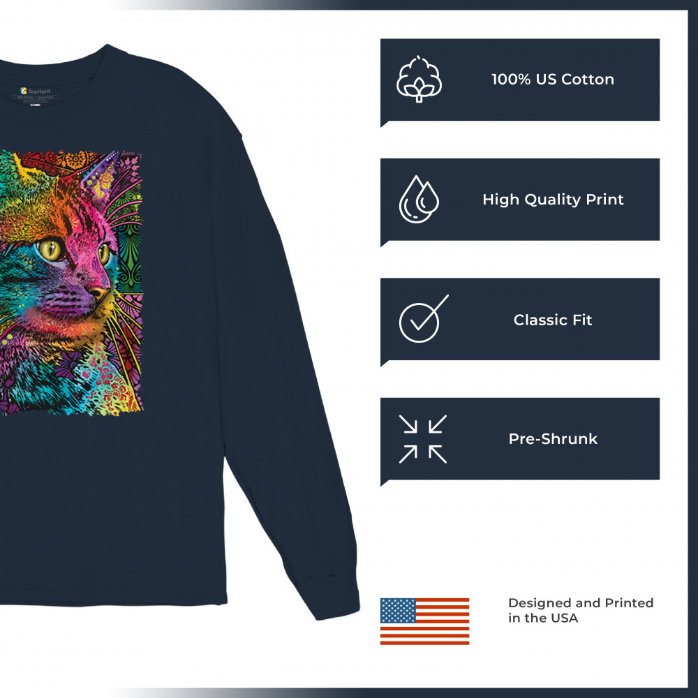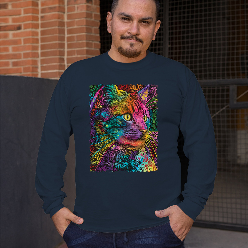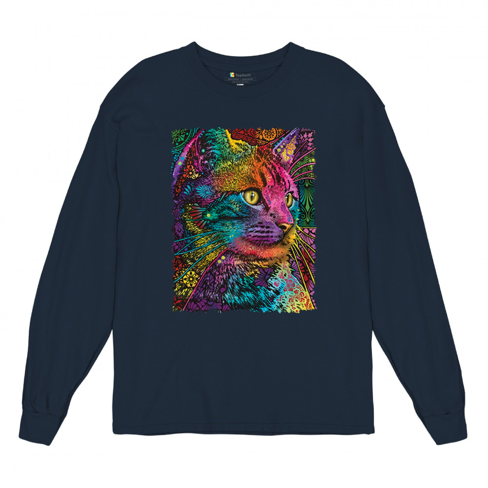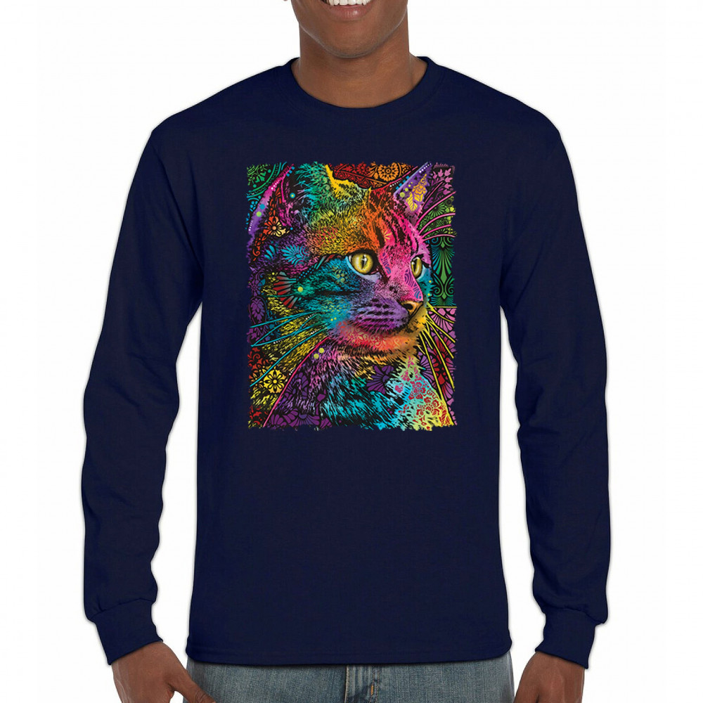 LOVABLE CAT long sleeve t-shirt dean russo colorful felis catus pattern art navy blue