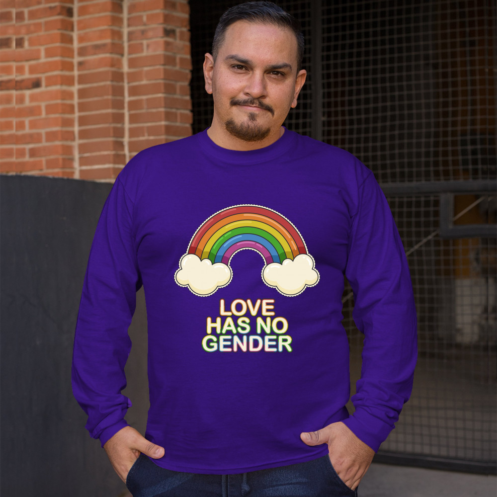LOVE HAS NO GENDER long sleeve t-shirt gay pride queer rainbow love is love purple
