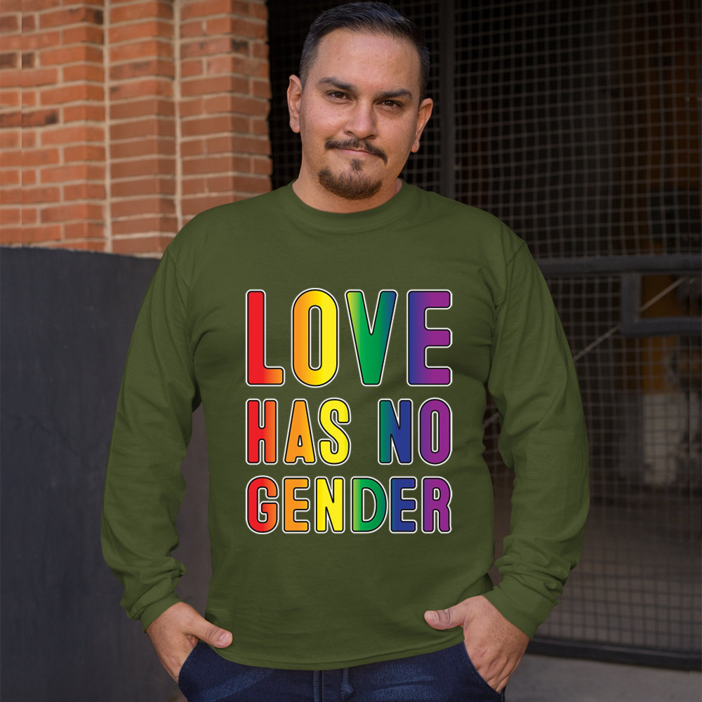 LOVE HAS NO GENDER long sleeve t-shirt lesbian gay bi transgender queer ally military green