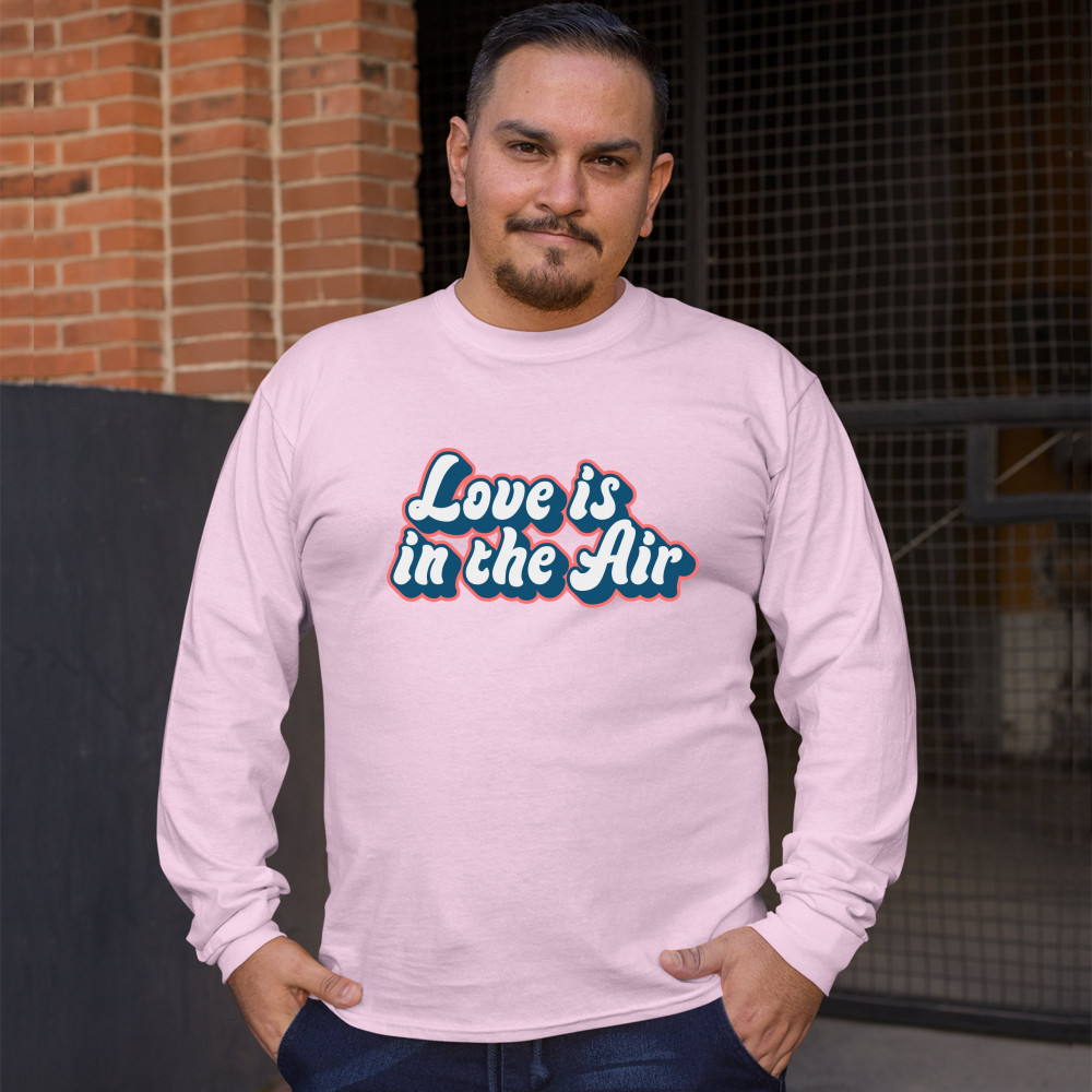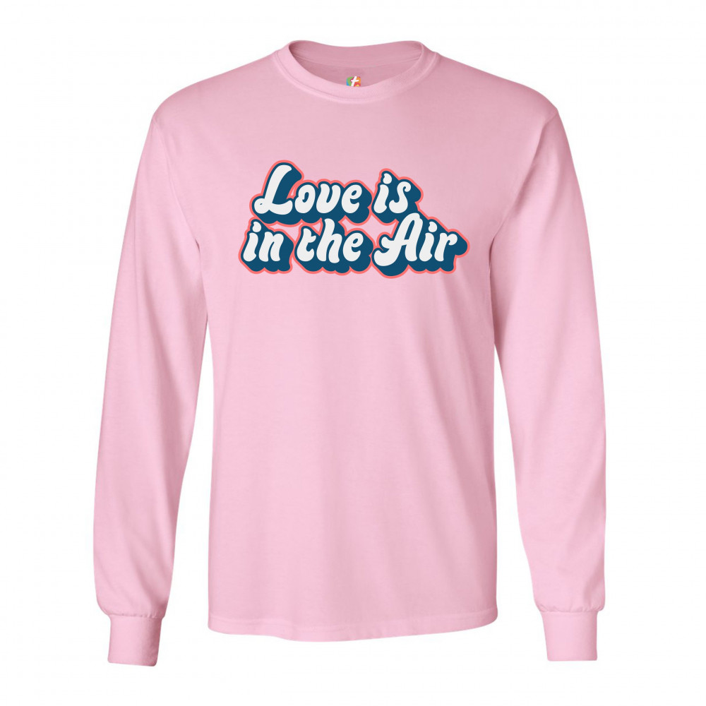 LOVE IS IN THE AIR long sleeve t-shirt happy valentine's day romance good vibes pink