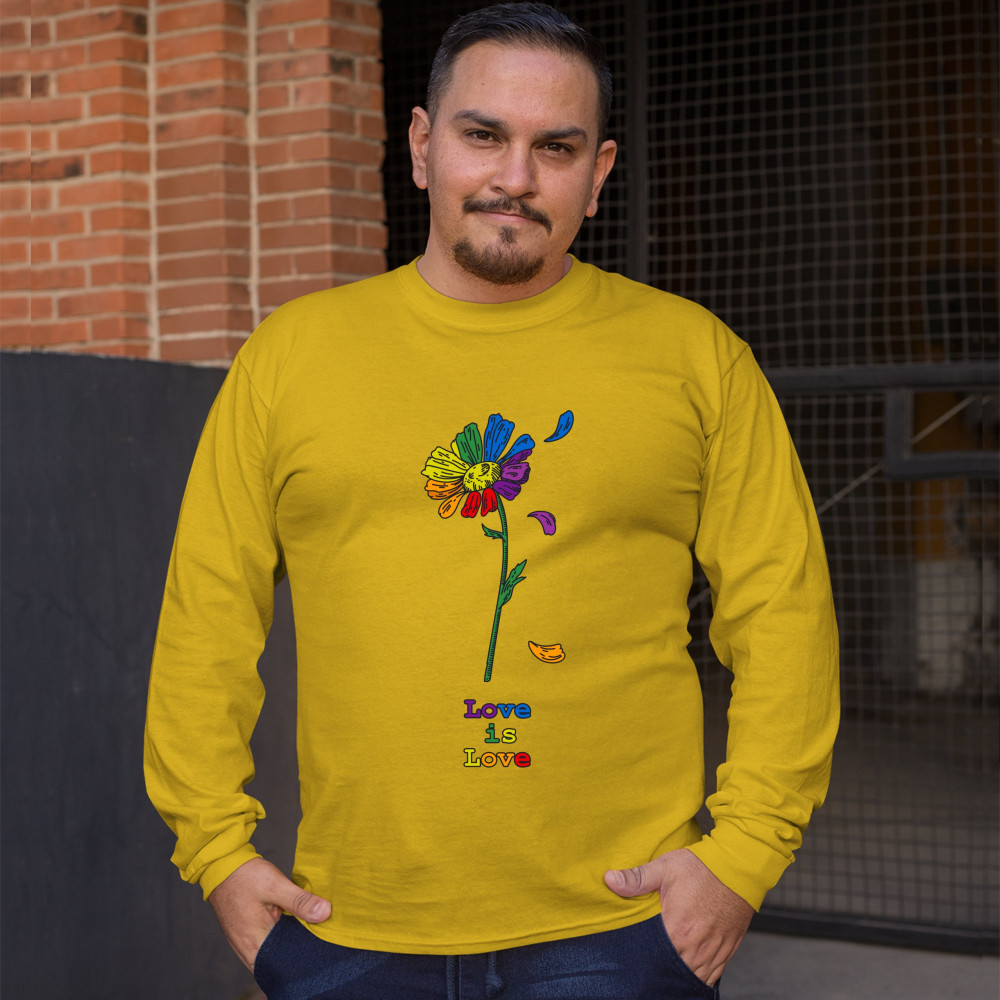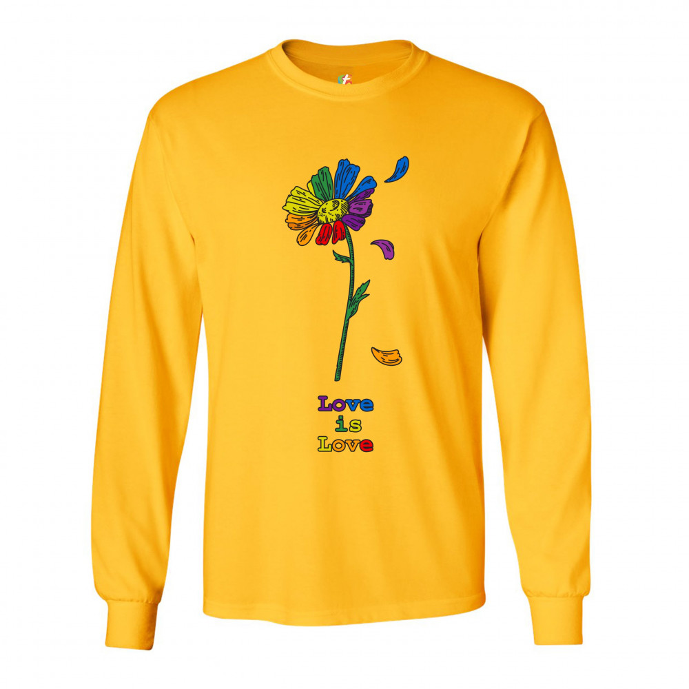 LOVE IS LOVE long sleeve t-shirt rainbow flower lgbt acceptance gay pride yellow
