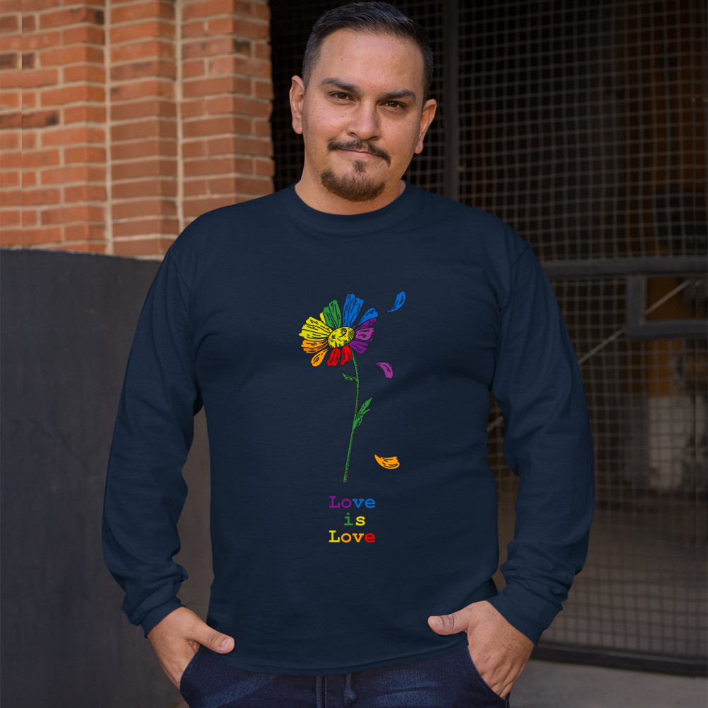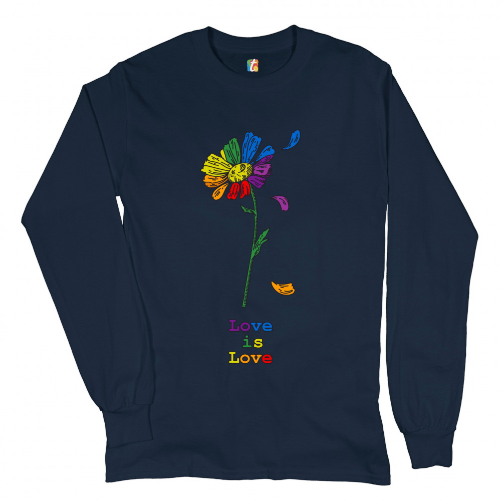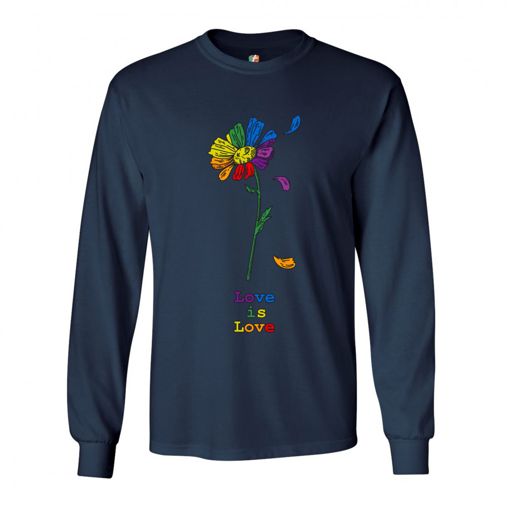 LOVE IS LOVE long sleeve t-shirt rainbow flower lgbt acceptance gay pride navy blue