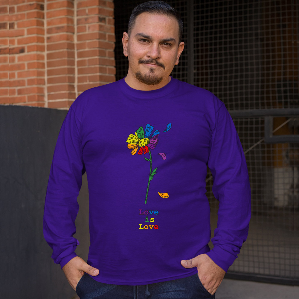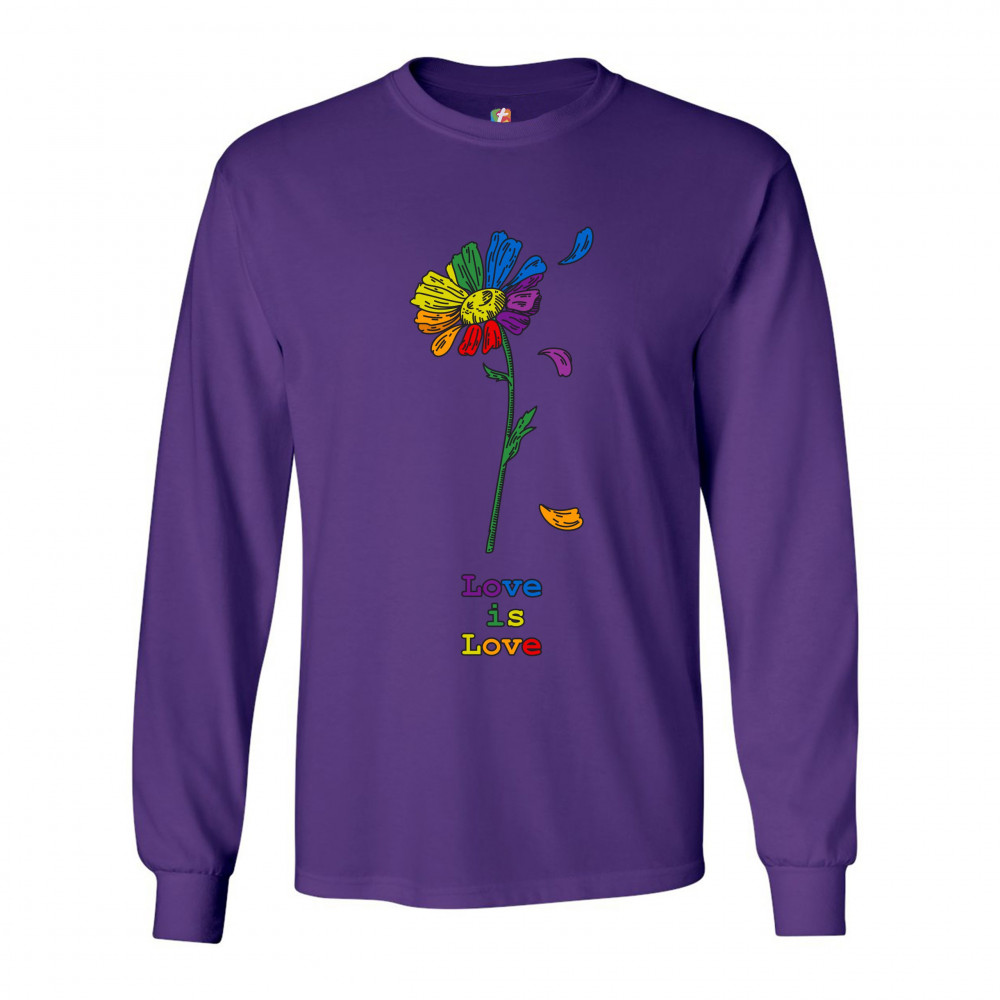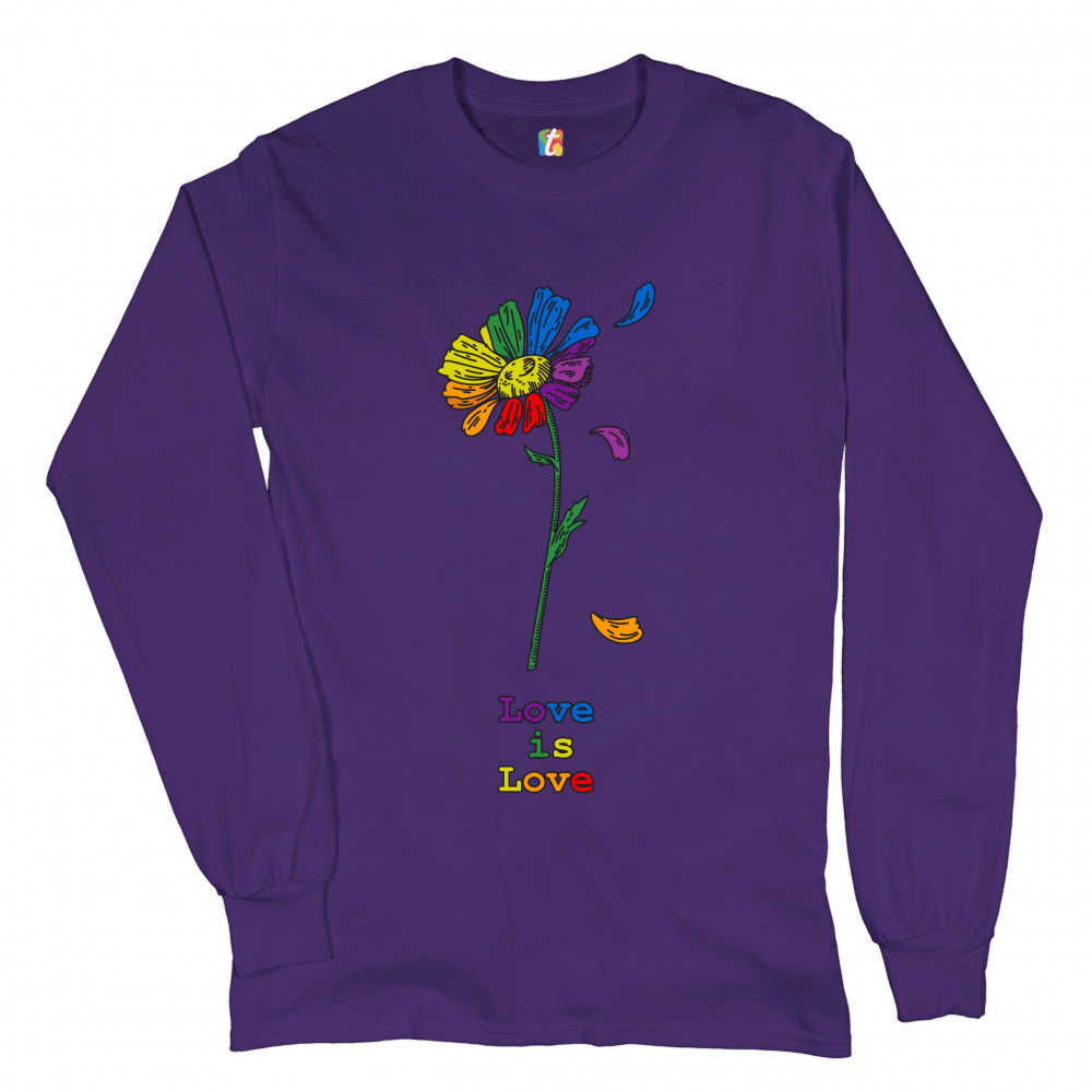 LOVE IS LOVE long sleeve t-shirt rainbow flower lgbt acceptance gay pride purple