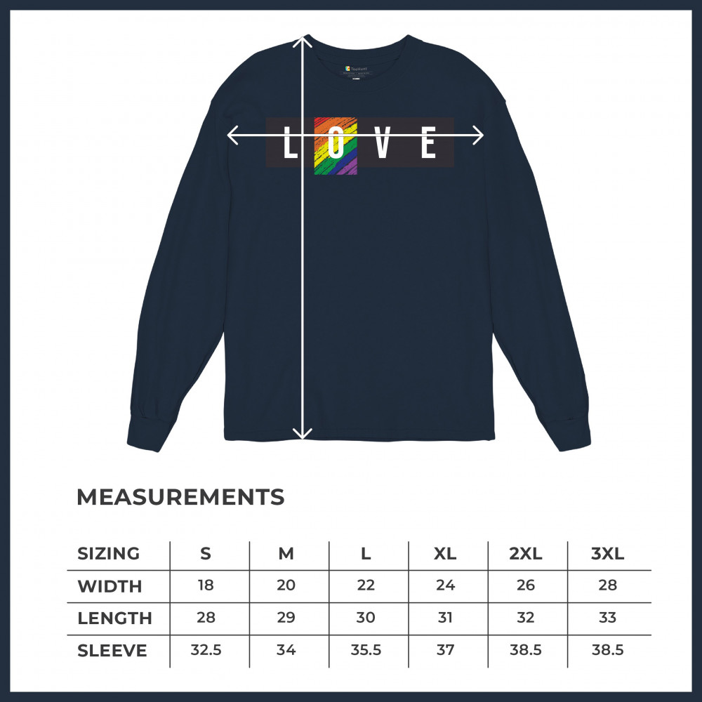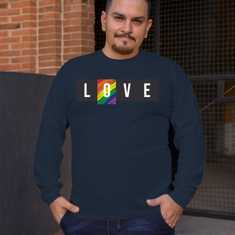 LOVE long sleeve t-shirt gay pride rainbow lgbtq tolerance equality navy blue