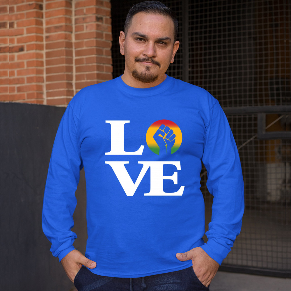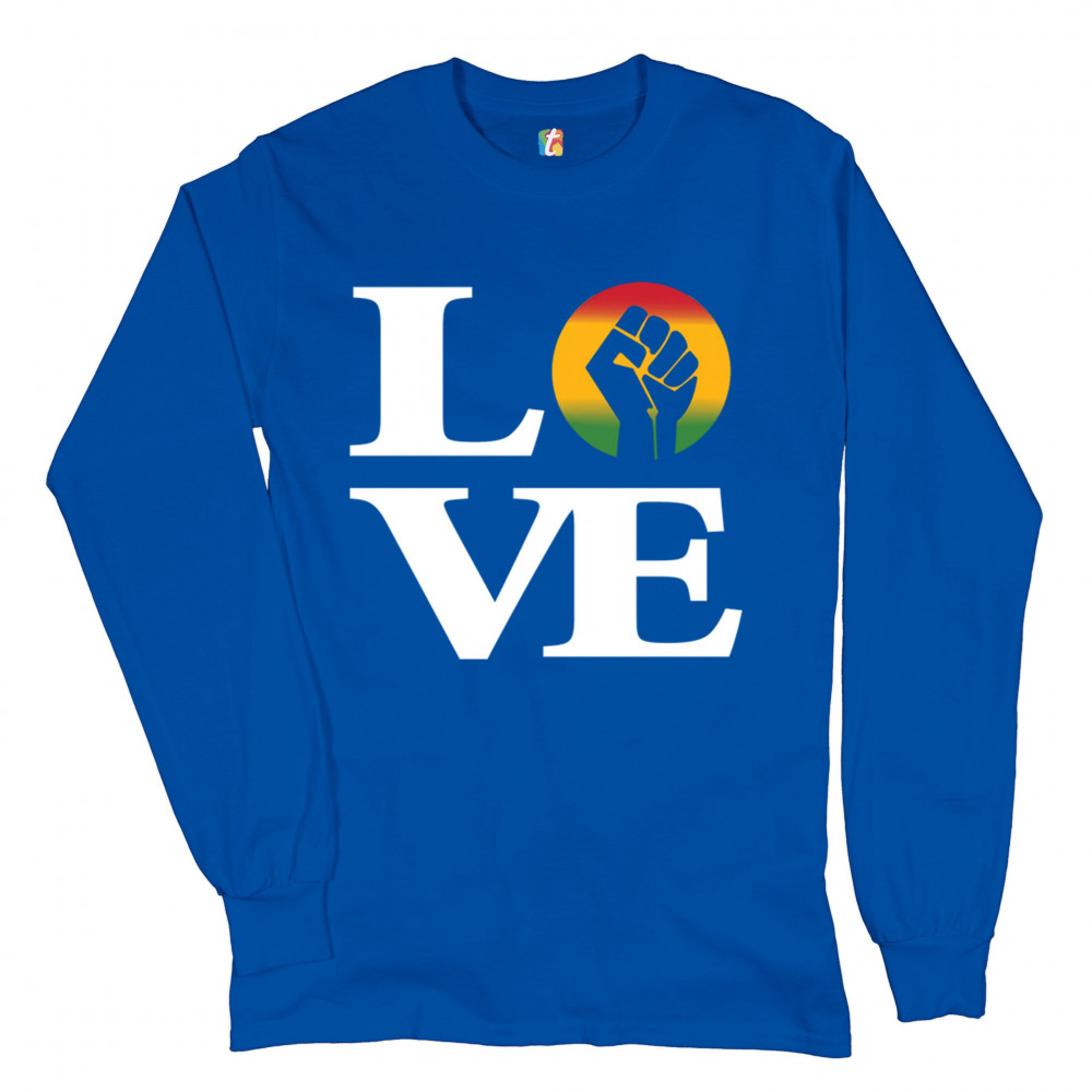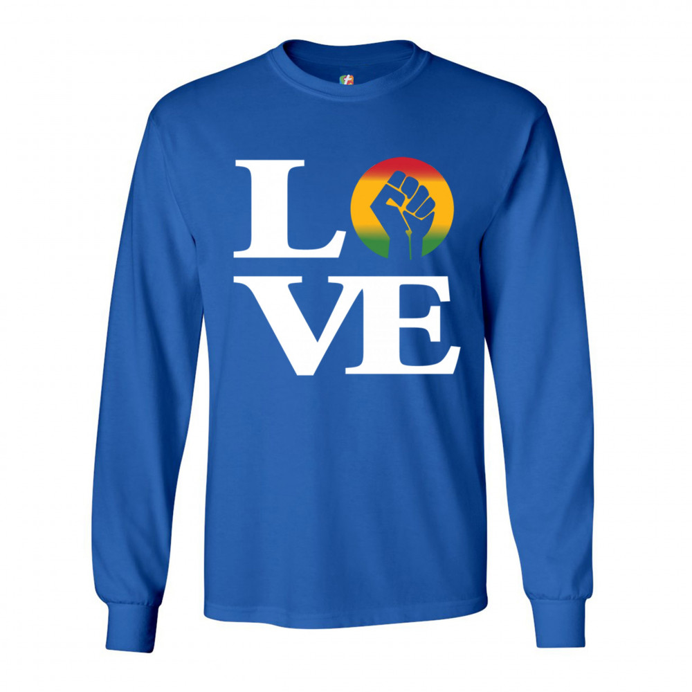 LOVE POWER FIST long sleeve t-shirt black lives matter african american royal blue