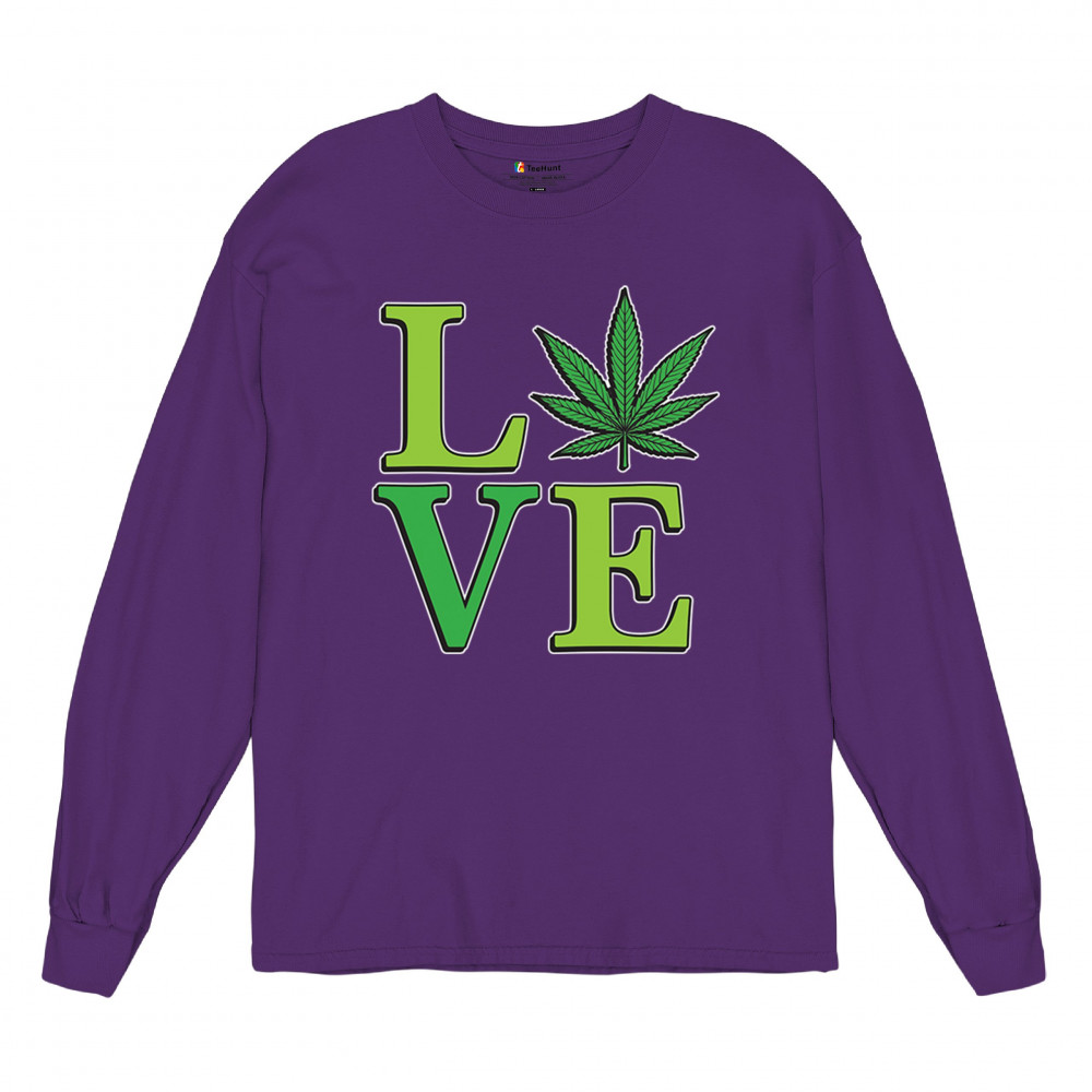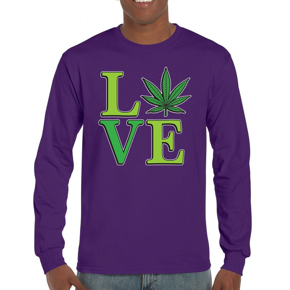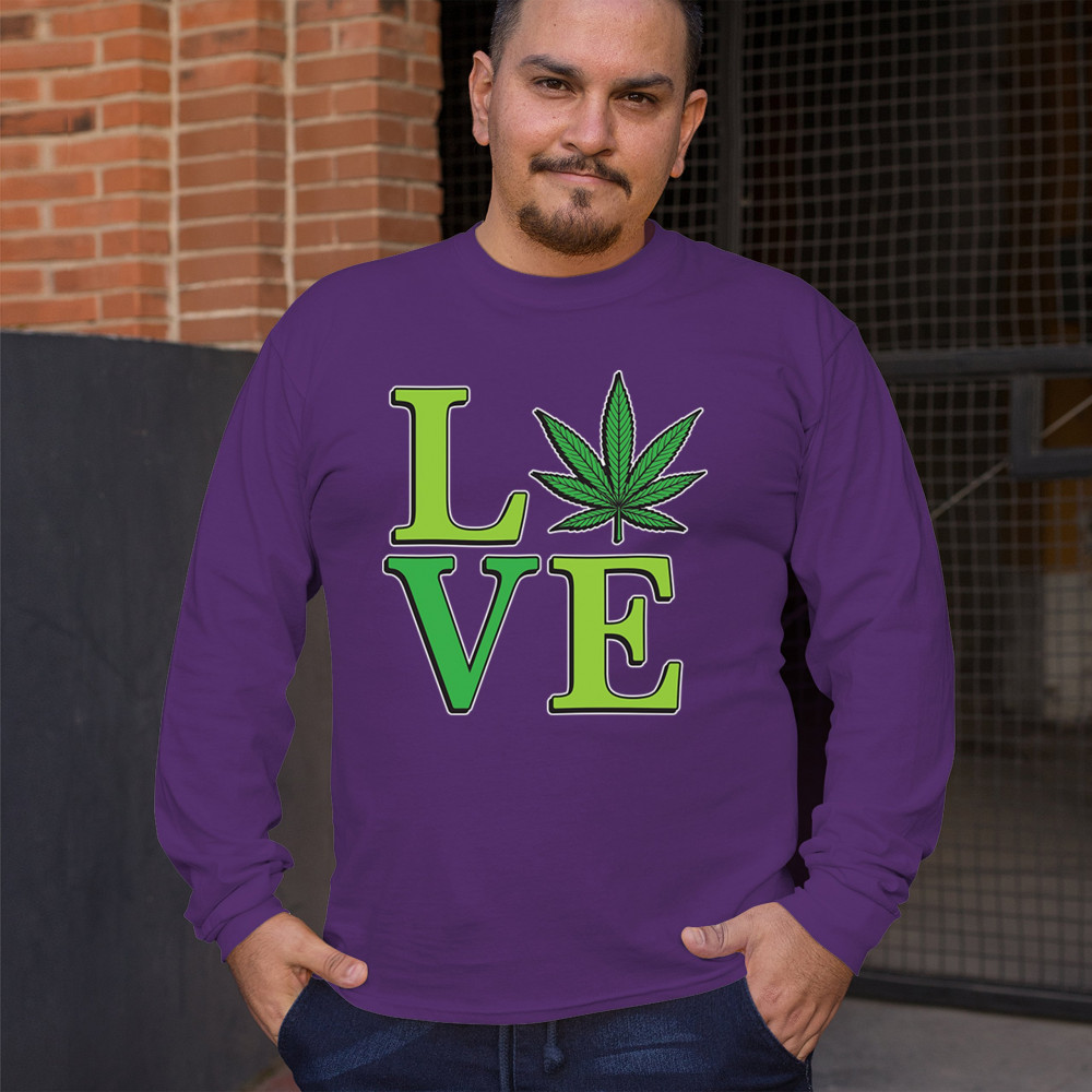 LOVE design with a bold weed leaf. Perfect for 420 fans, stoners, cannabis lifestyle wear, green pride, and marijuana lovers.