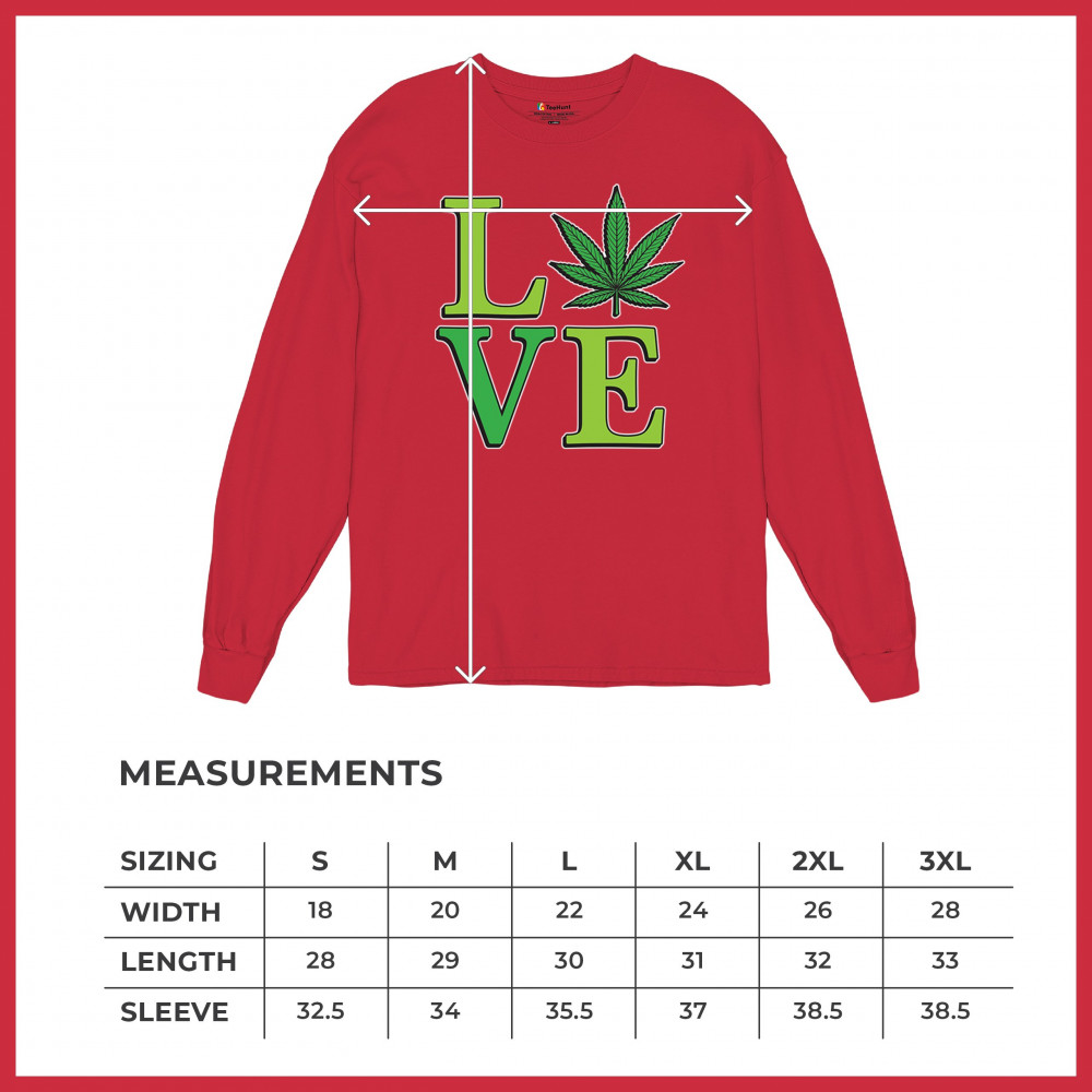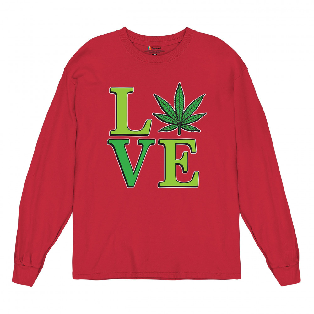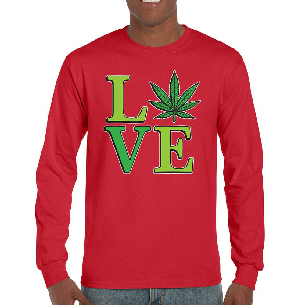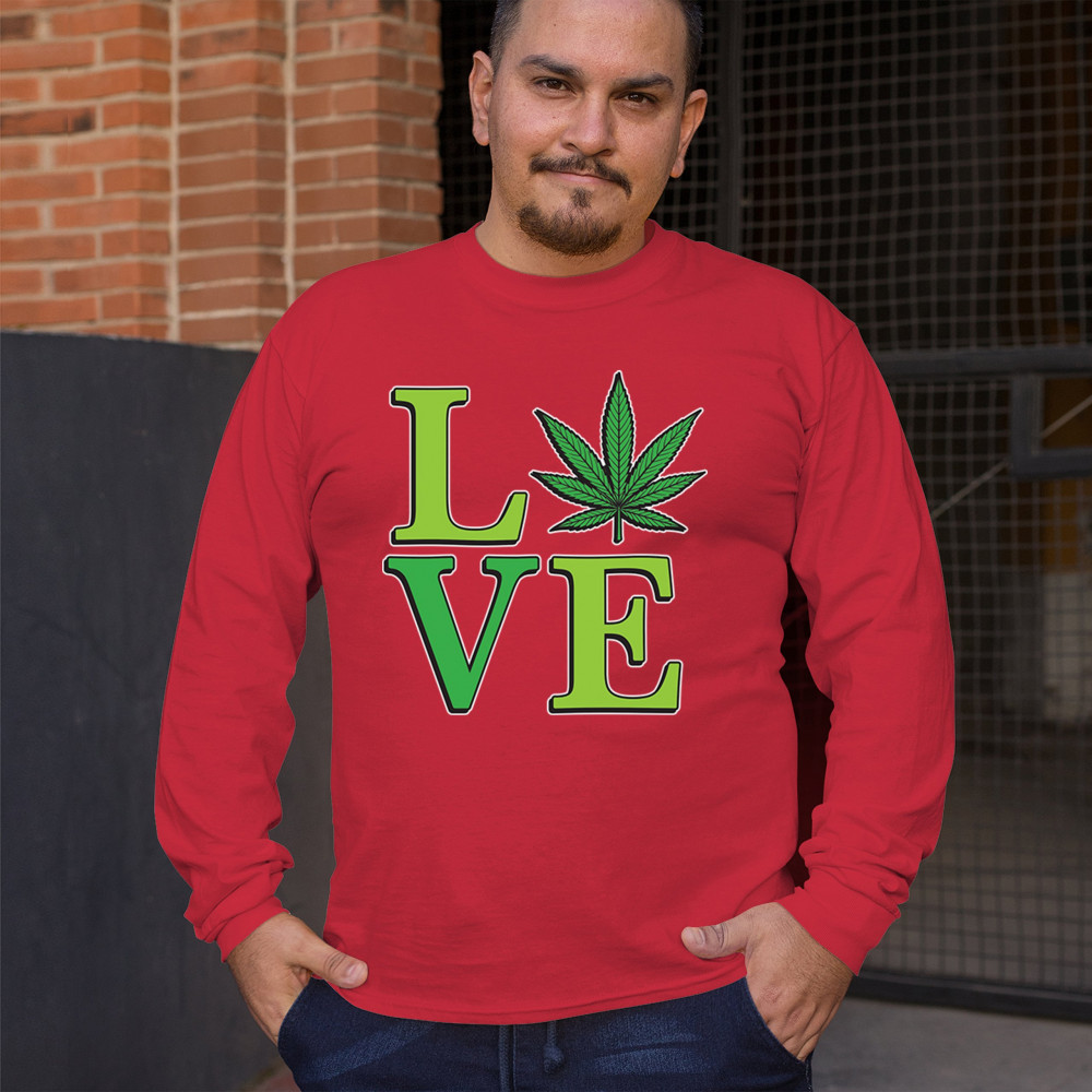 LOVE design with a bold weed leaf. Perfect for 420 fans, stoners, cannabis lifestyle wear, green pride, and marijuana lovers.