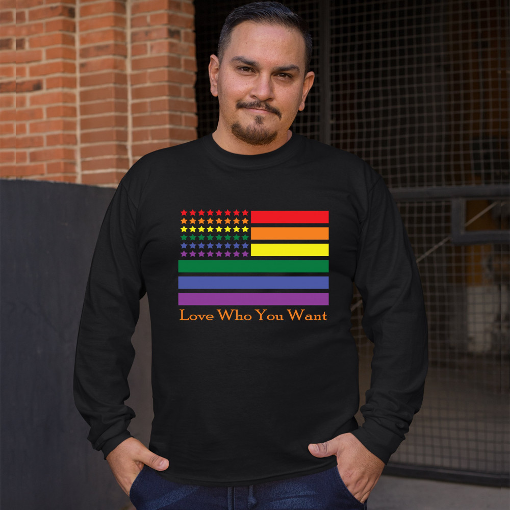 LOVE WHO YOU WANT long sleeve t-shirt american gay pride rainbow flag lgbt black