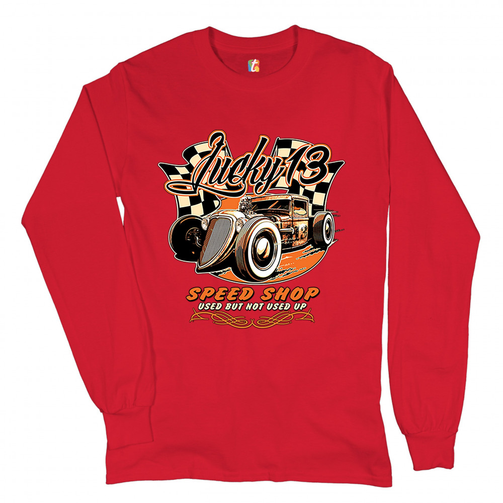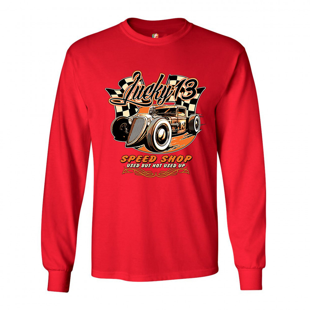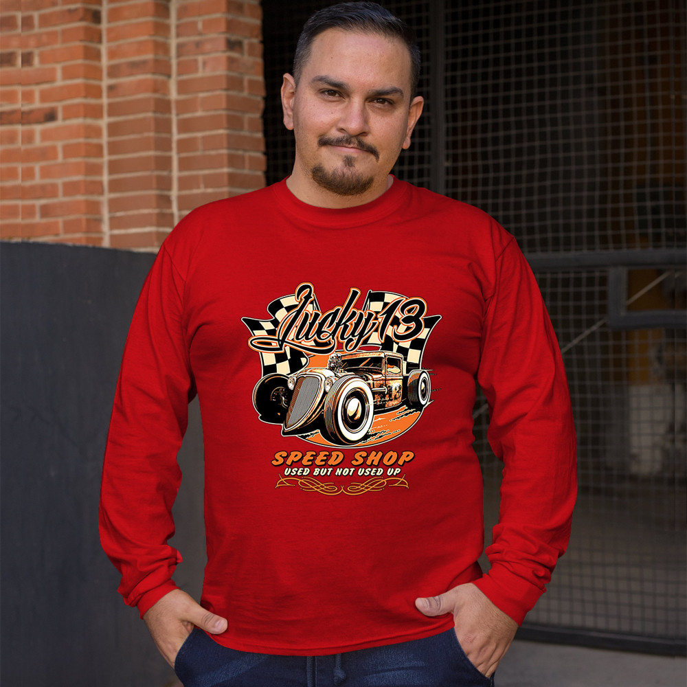 LUCKY 13 SPEED SHOP long sleeve t-shirt rat rod route 66 vintage racing car red