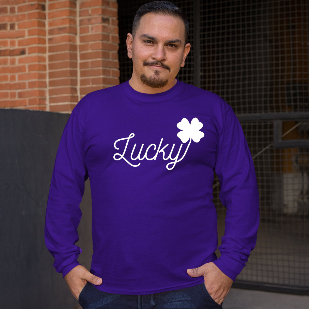 LUCKY SHAMROCK long sleeve t-shirt st. patrick's day funny holiday purple