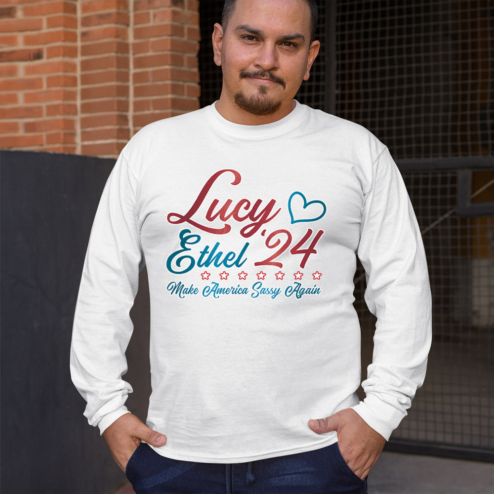 Step back into the golden age of television with this unique election-themed design. Perfect for fans of classic American TV, this design blends nostalgia with modern-day election humor. Whether you're wearing it to make a statement or just for fun, this design is sure to turn heads and spark conversations. Ideal for casual wear, themed parties, or as a thoughtful gift for TV buffs. Celebrate the past while looking ahead with this delightful and sassy design.