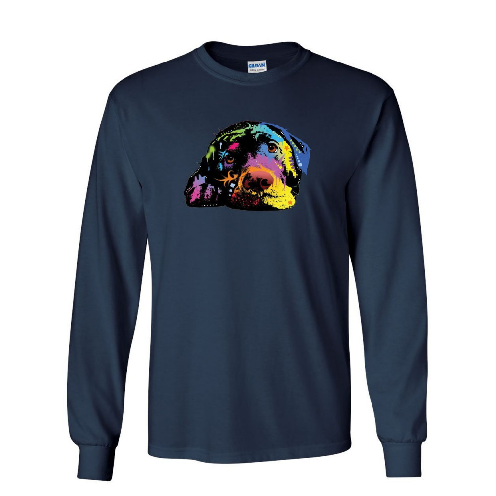 LYING LABRADOR RETRIEVER long sleeve t-shirt dean russo neon lab pet lovers tee navy blue