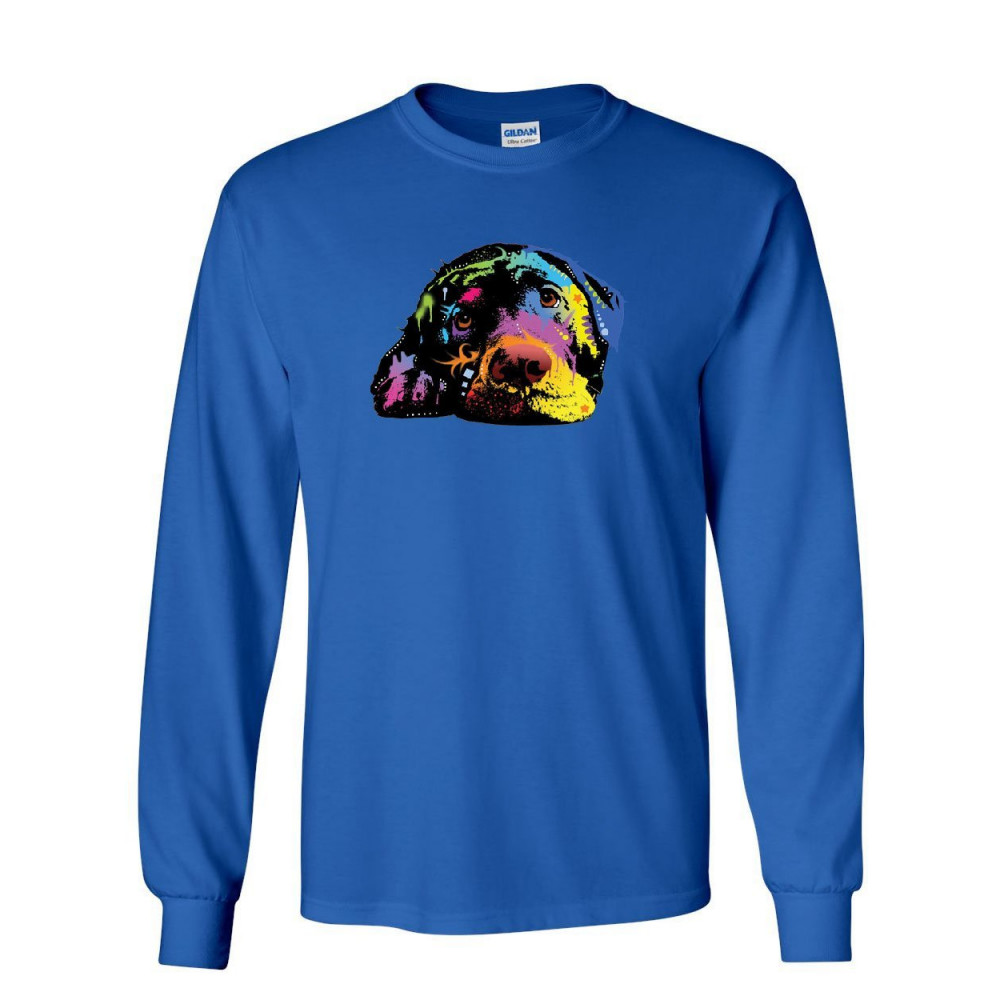 LYING LABRADOR RETRIEVER long sleeve t-shirt dean russo neon lab pet lovers tee royal blue