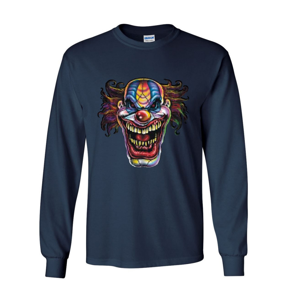 MAD EVIL CLOWN FACE long sleeve t-shirt scary horror insane joker navy blue