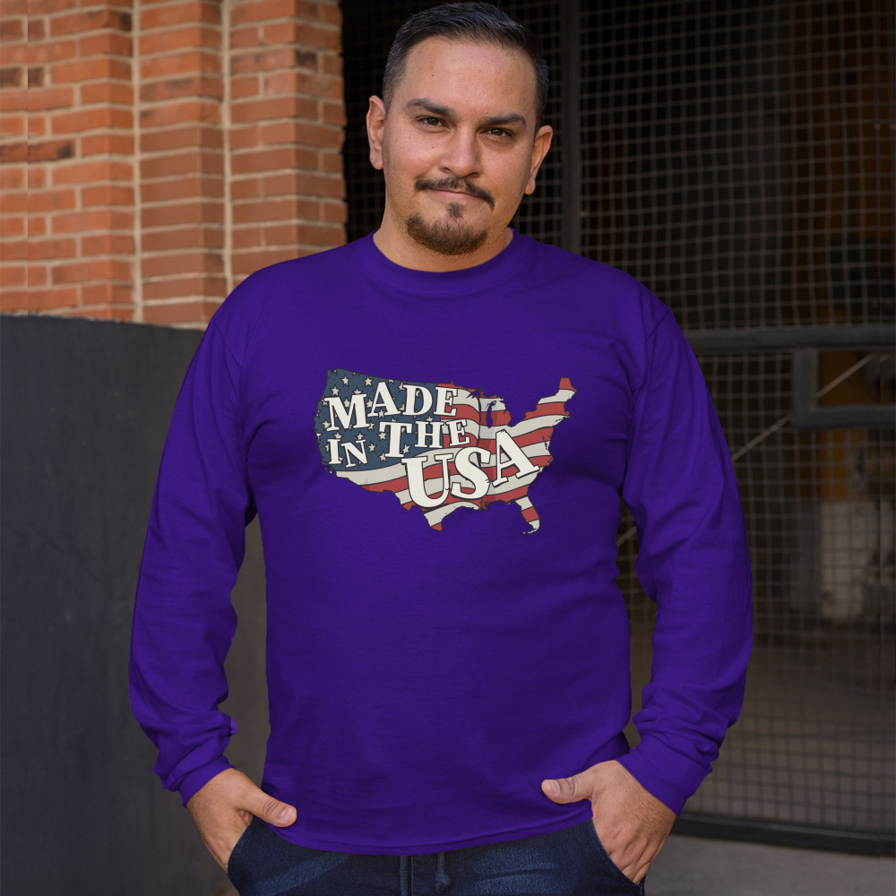 MADE IN THE USA long sleeve t-shirt american flag independence day 4th of july purple