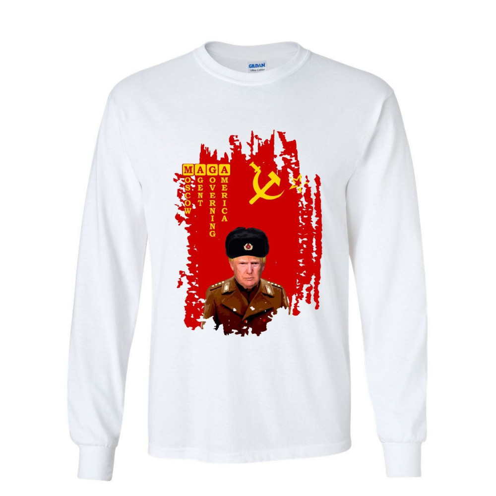 MAGA COMRADE TRUMP long sleeve t-shirt funny soviet flag ussr russian agent tee white