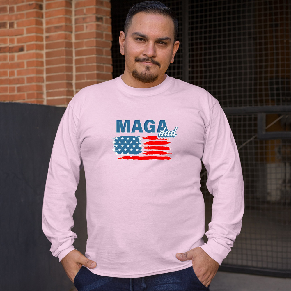 MAGA DAD AMERICAN FLAG long sleeve t-shirt donald trump 2020 keep america great pink