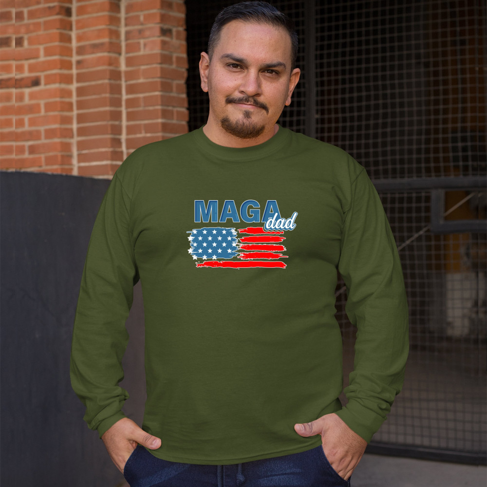 MAGA DAD AMERICAN FLAG long sleeve t-shirt donald trump 2020 keep america great military green