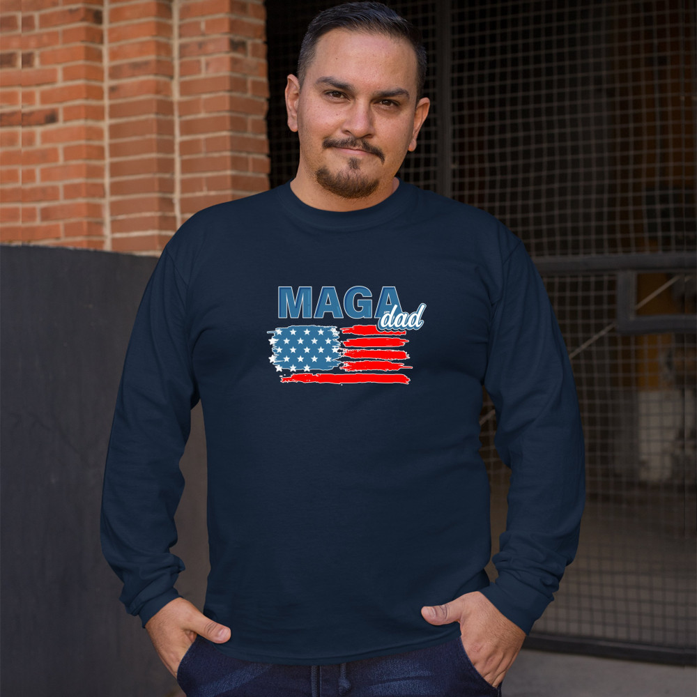 MAGA DAD AMERICAN FLAG long sleeve t-shirt donald trump 2020 keep america great navy blue
