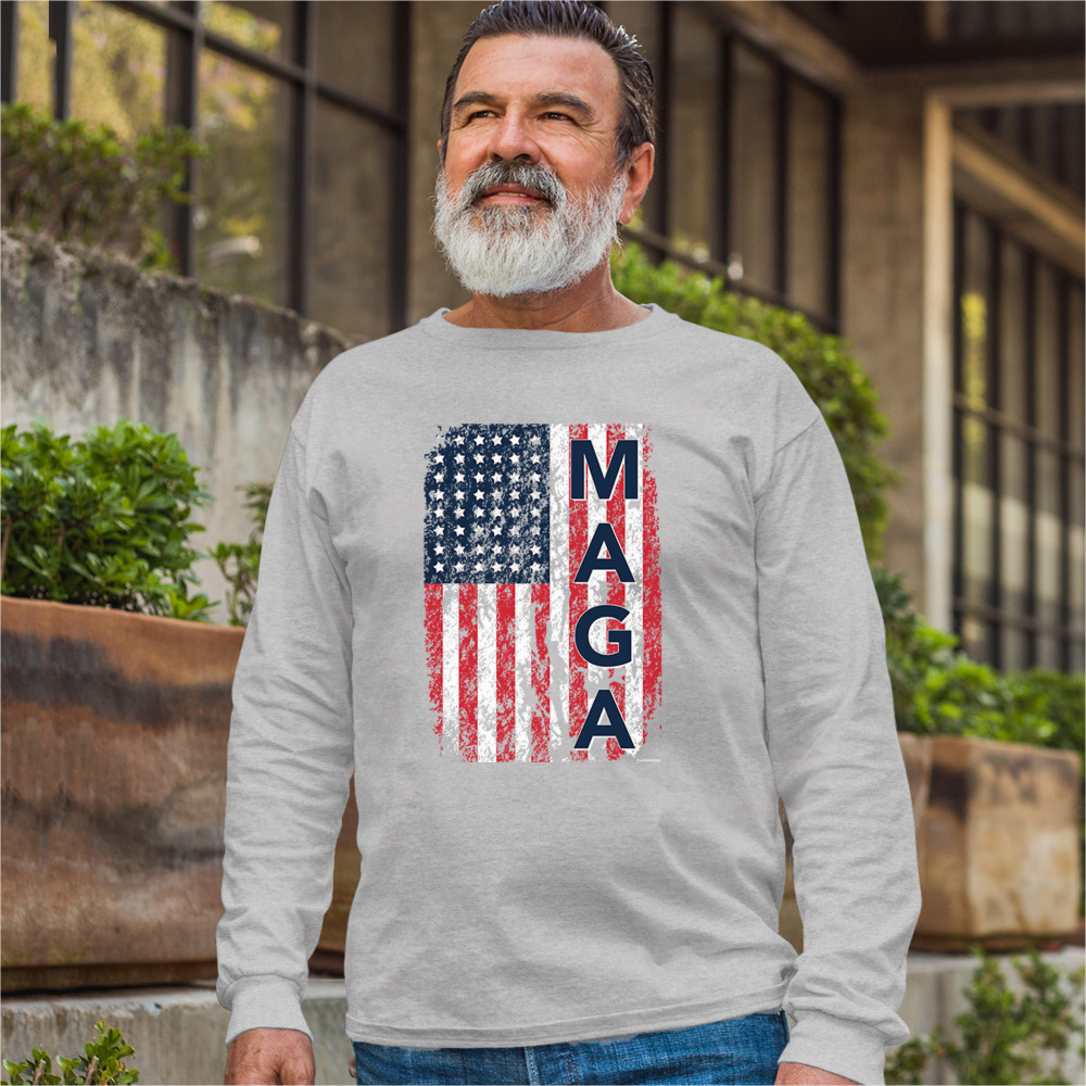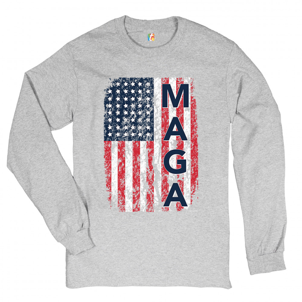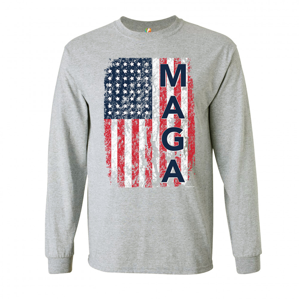 MAGA FLAG long sleeve t-shirt donald trump 2020 flag keep america great gray