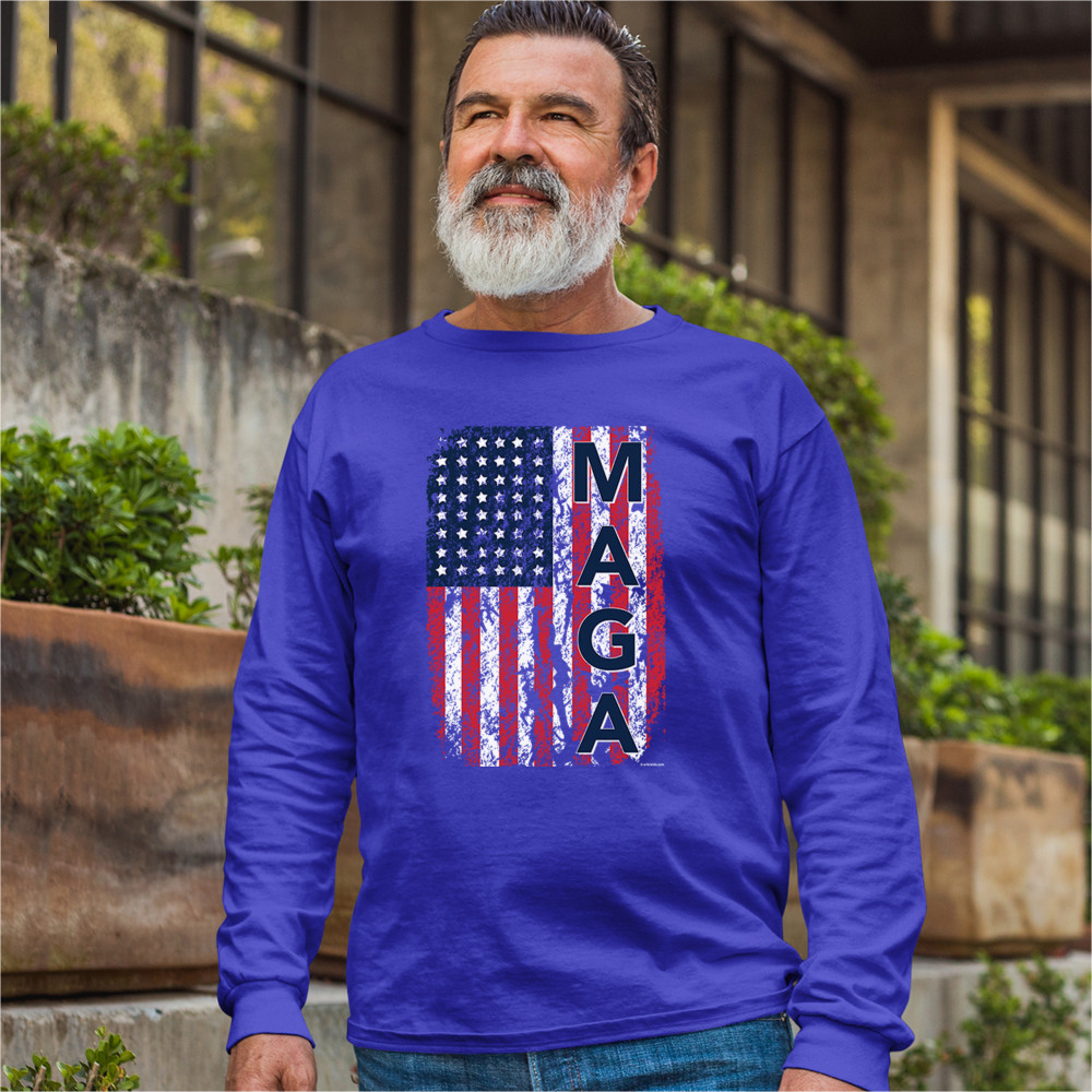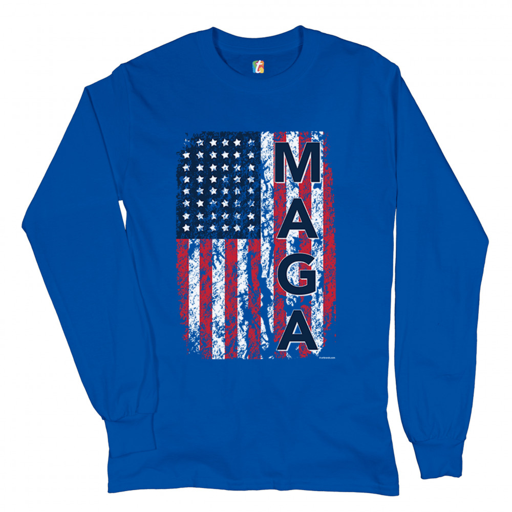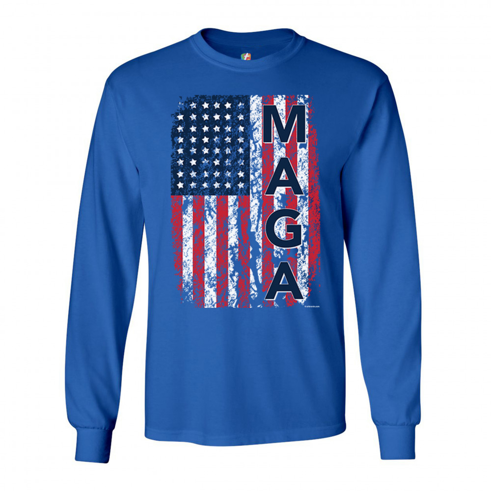 MAGA FLAG long sleeve t-shirt donald trump 2020 flag keep america great royal blue