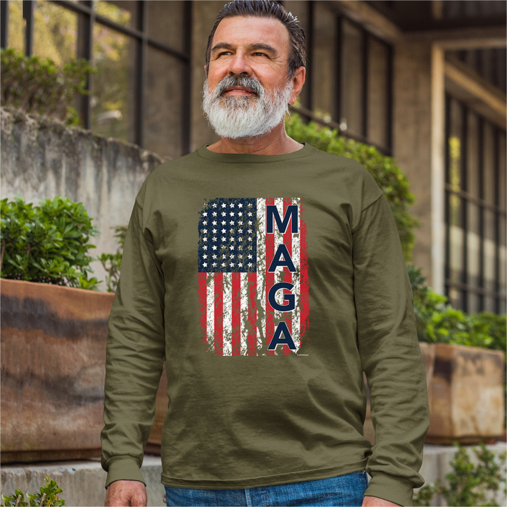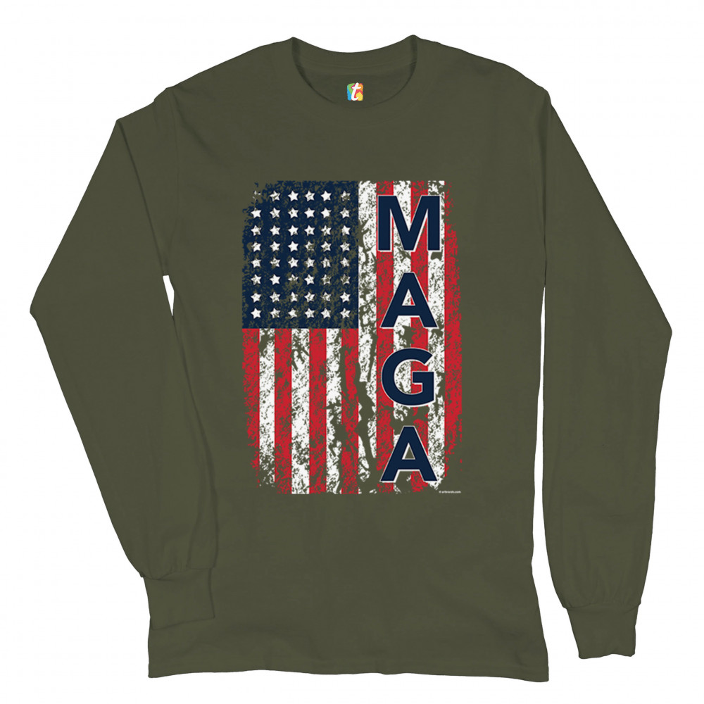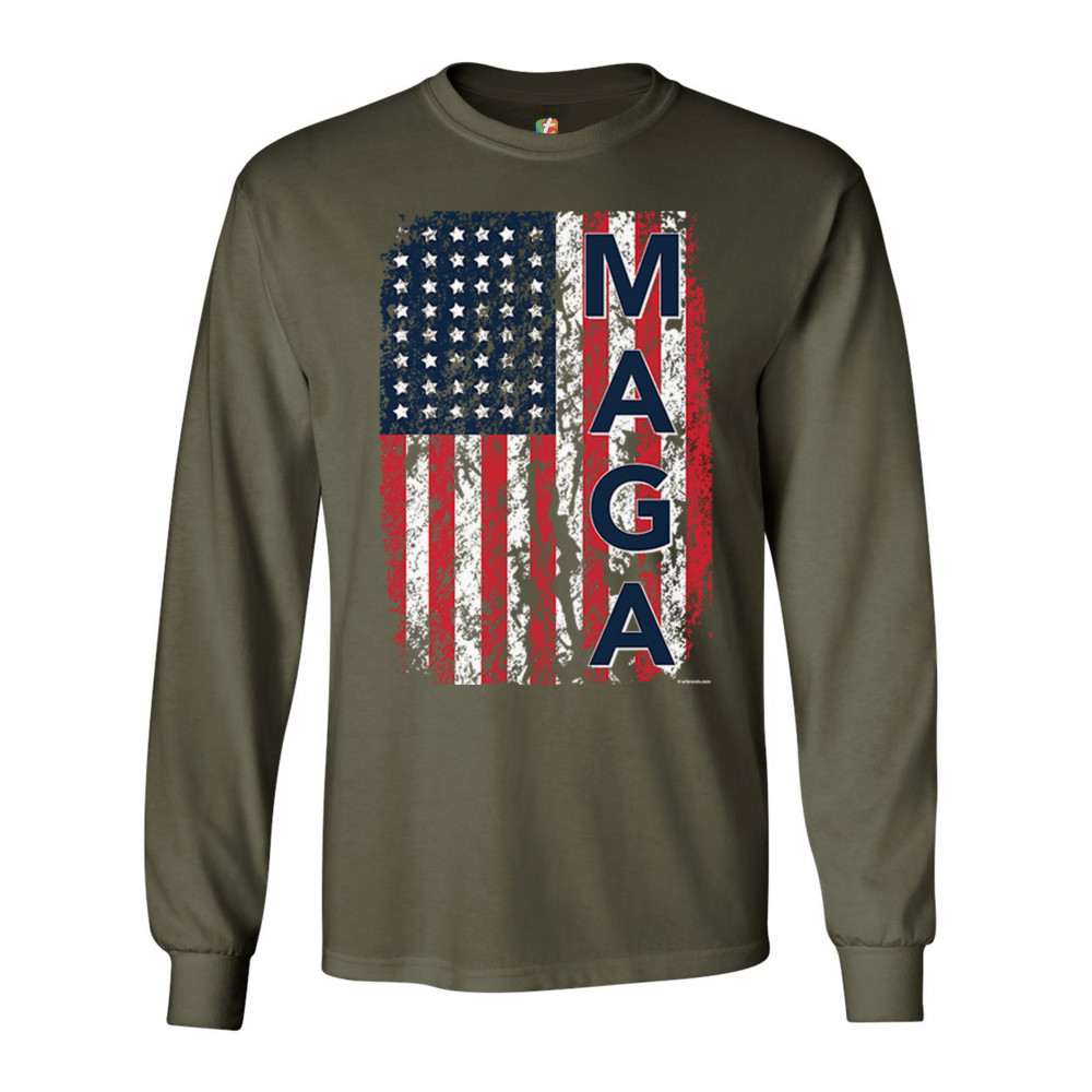 MAGA FLAG long sleeve t-shirt donald trump 2020 flag keep america great military green