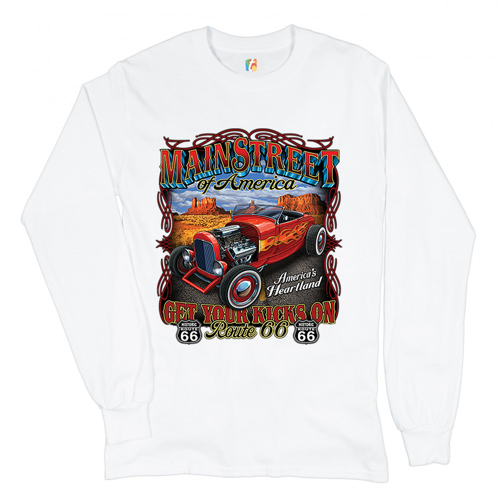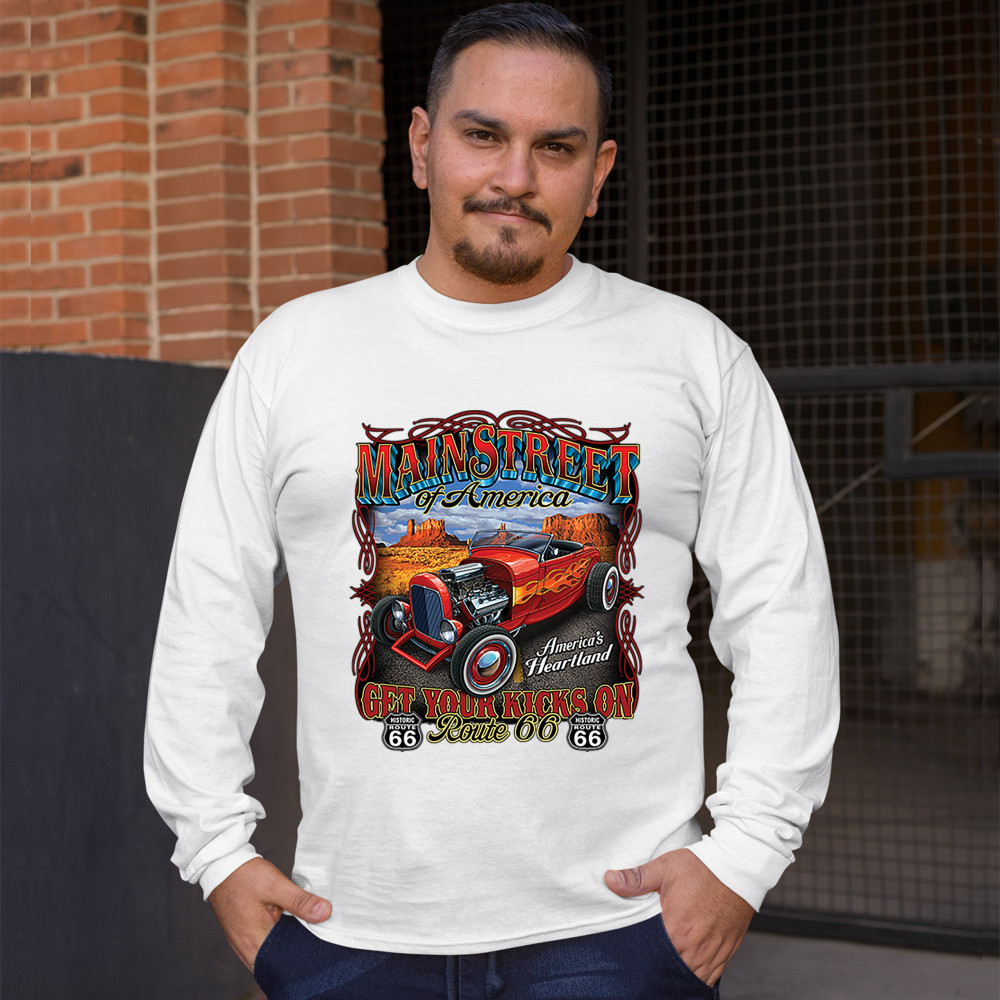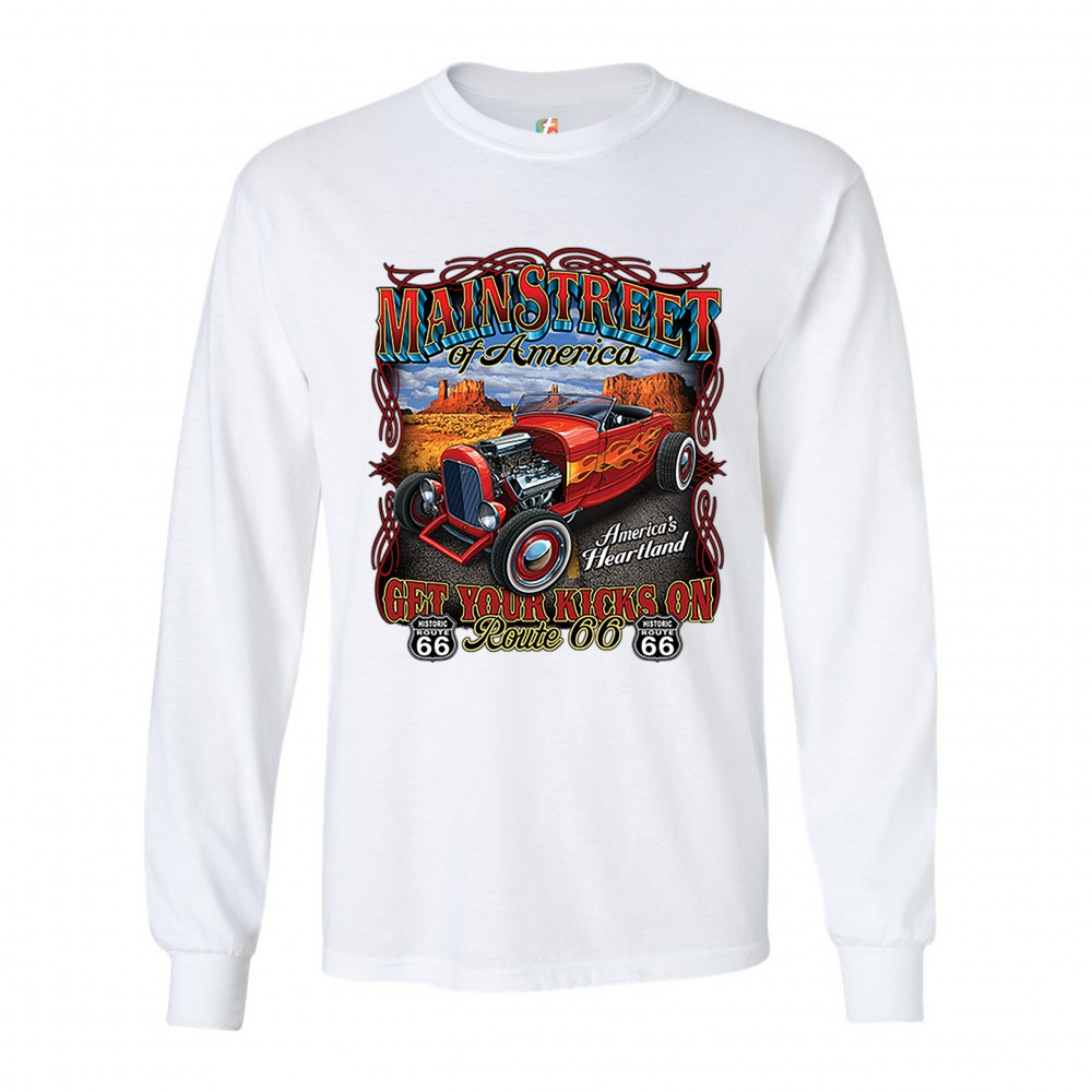MAIN STREET OF AMERICA long sleeve t-shirt america's heartland route 66 hot rod white