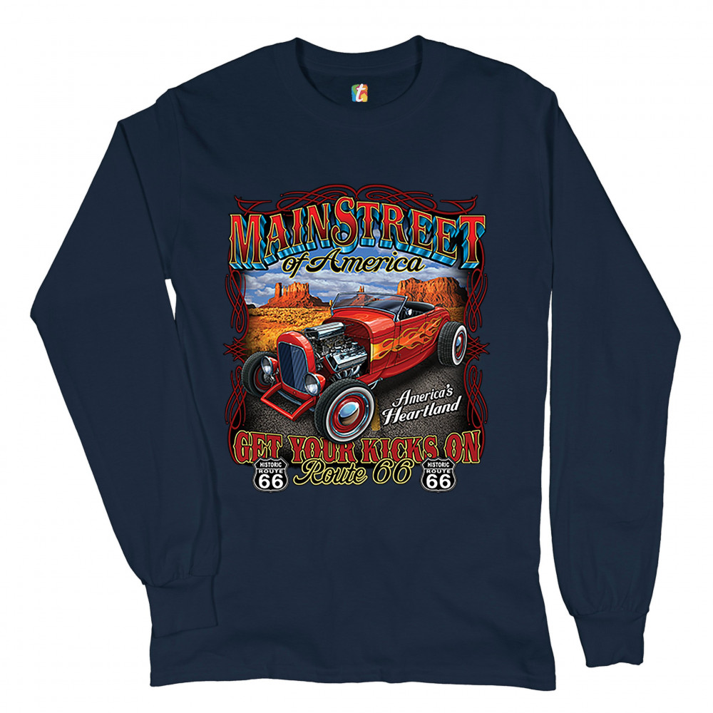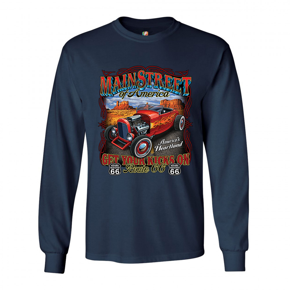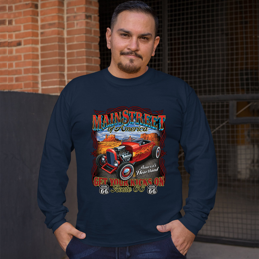 MAIN STREET OF AMERICA long sleeve t-shirt america's heartland route 66 hot rod navy blue