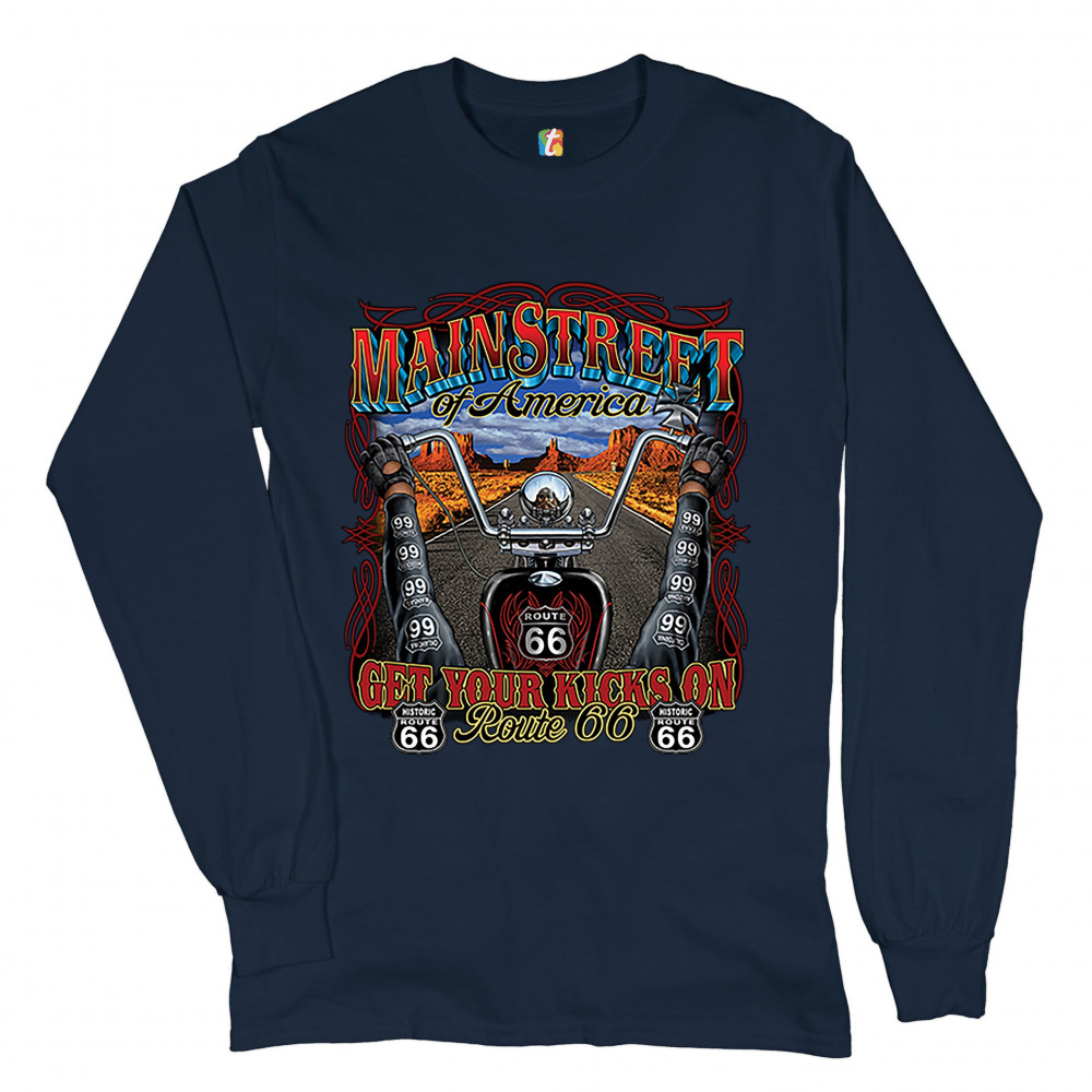 MAIN STREET OF AMERICA long sleeve t-shirt get your kicks on route 66 biker navy blue