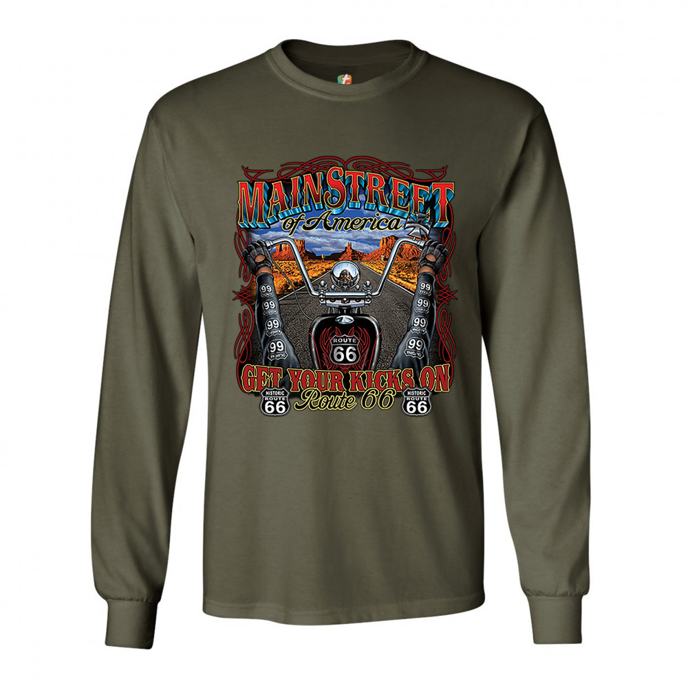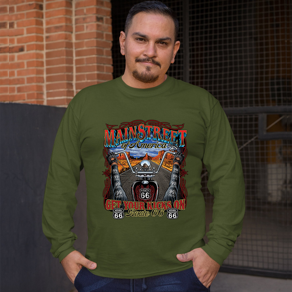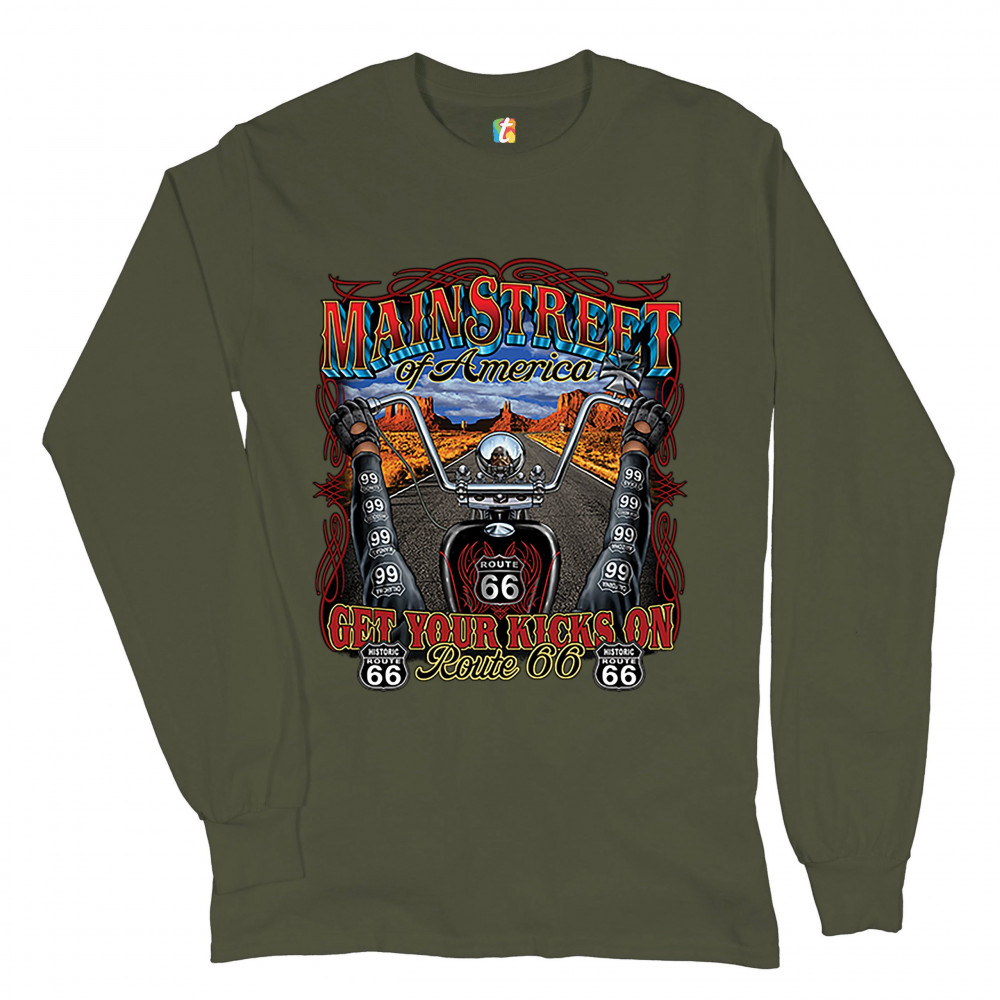 MAIN STREET OF AMERICA long sleeve t-shirt get your kicks on route 66 biker military green