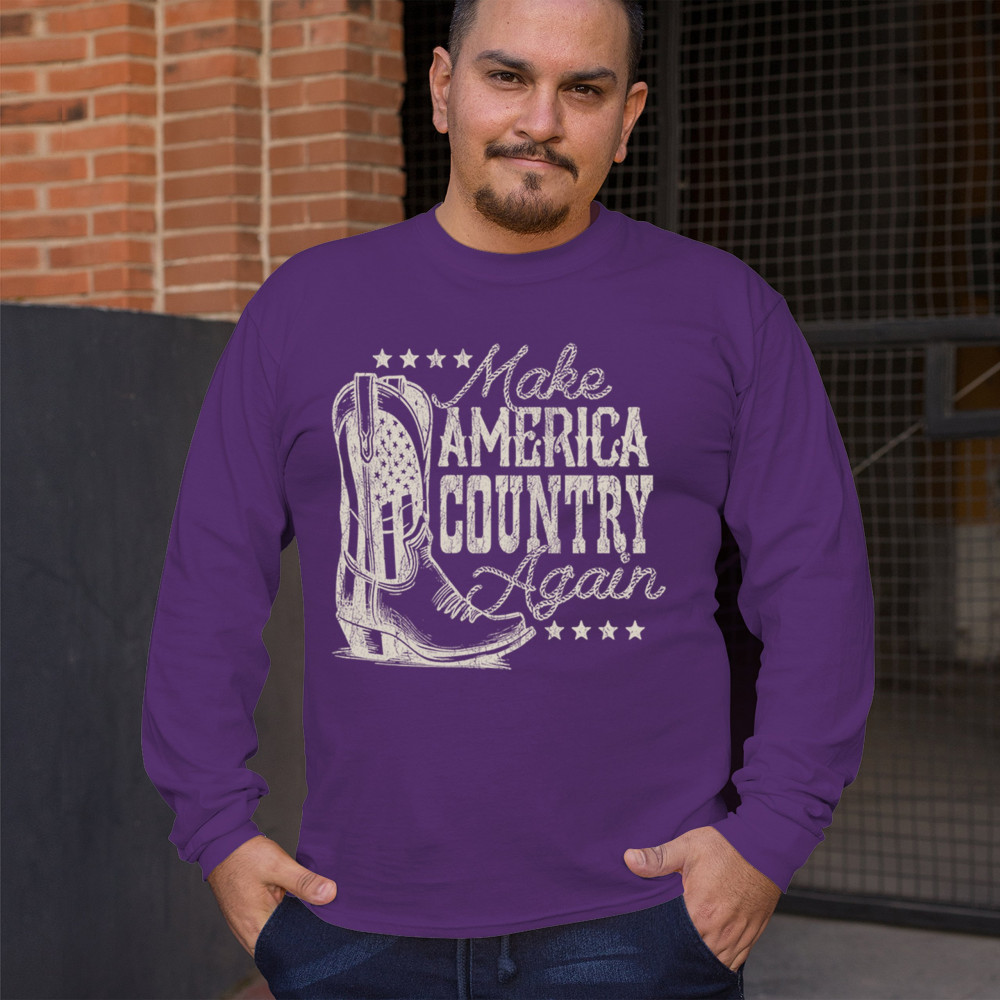 Bold patriotic country boot design with rustic flair. Perfect for rodeos, concerts, and anyone who wants to Make America Country Again.