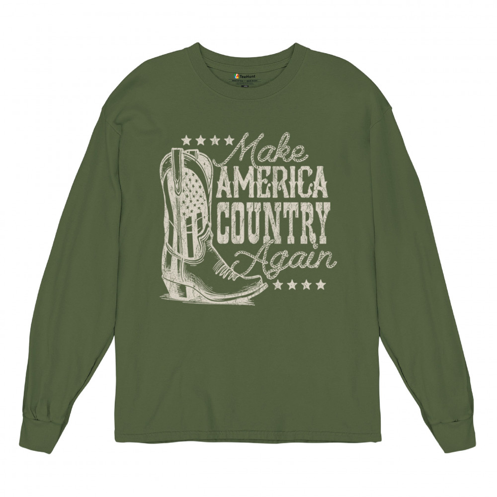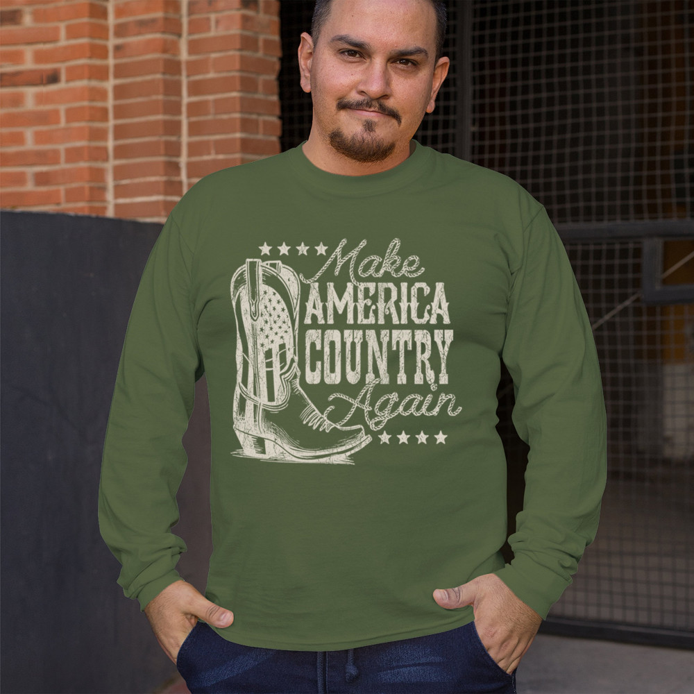 Stand tall for country pride with this bold vintage design featuring a cowboy boot stamped with the American flag. With a rustic look and strong patriotic message, this graphic brings together rural roots, western values, and old-school grit—perfect for rodeos, fairs, country shows, or Fourth of July gatherings.