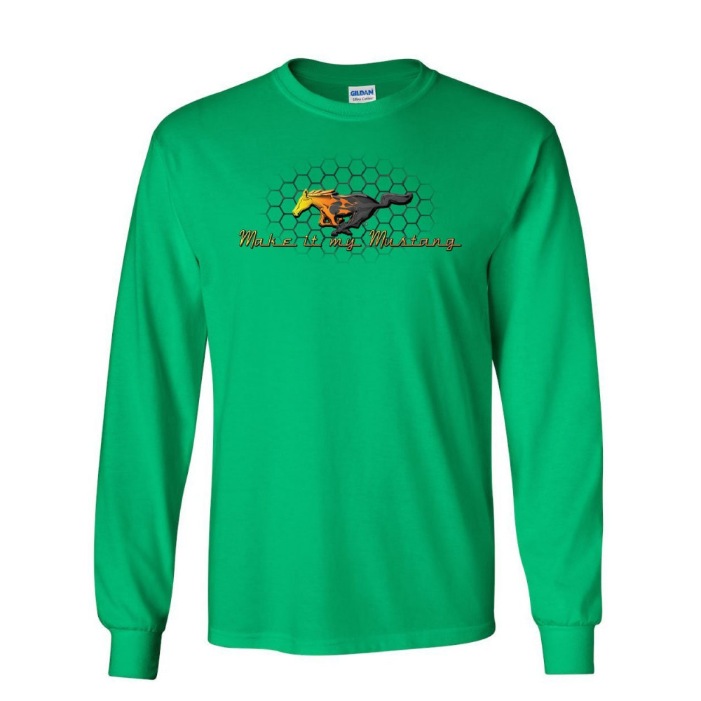 MAKE IT MY MUSTANG long sleeve t-shirt honeycomb american classic fire horse tee green
