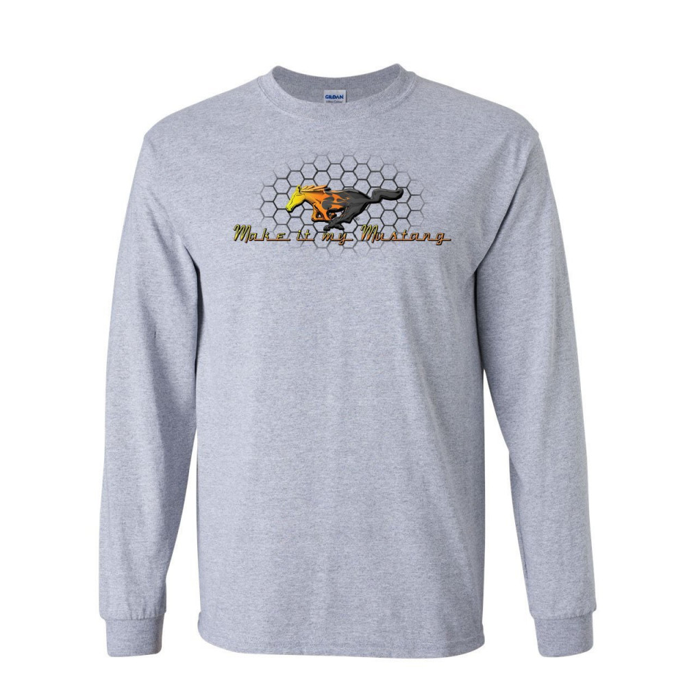 MAKE IT MY MUSTANG long sleeve t-shirt honeycomb american classic fire horse tee gray