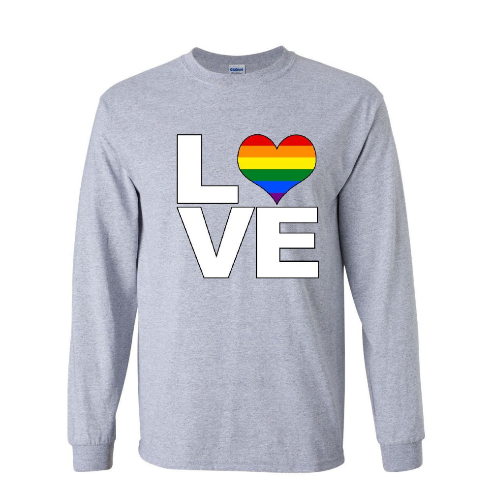 MAKE LOVE GAY PRIDE LGBTQ RAINBOW long sleeve t-shirt equal rights tolerance gray