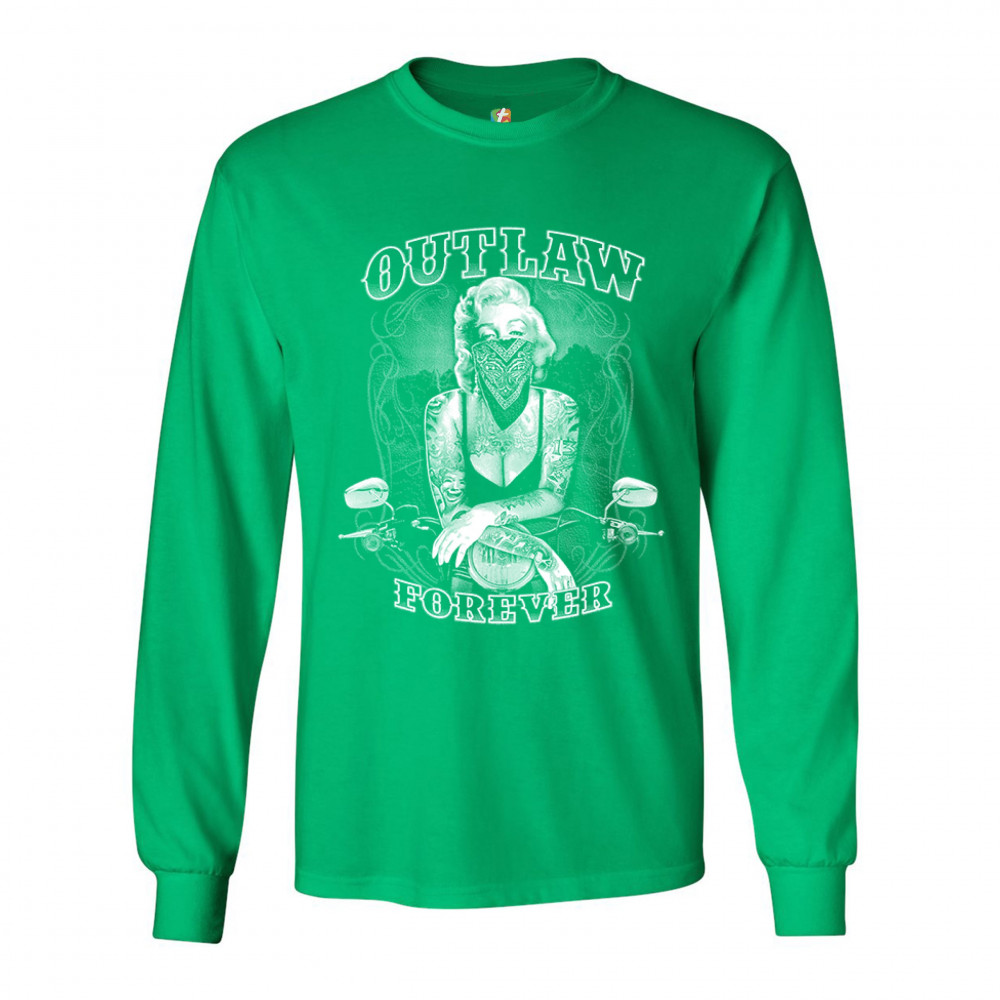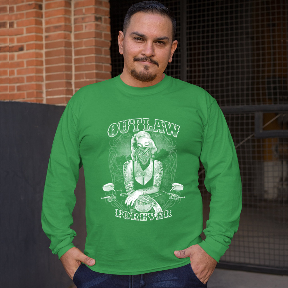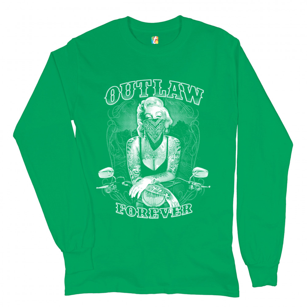 MARILYN MONROE OUTLAW FOREVER long sleeve t-shirt biker live to ride motorcycle green