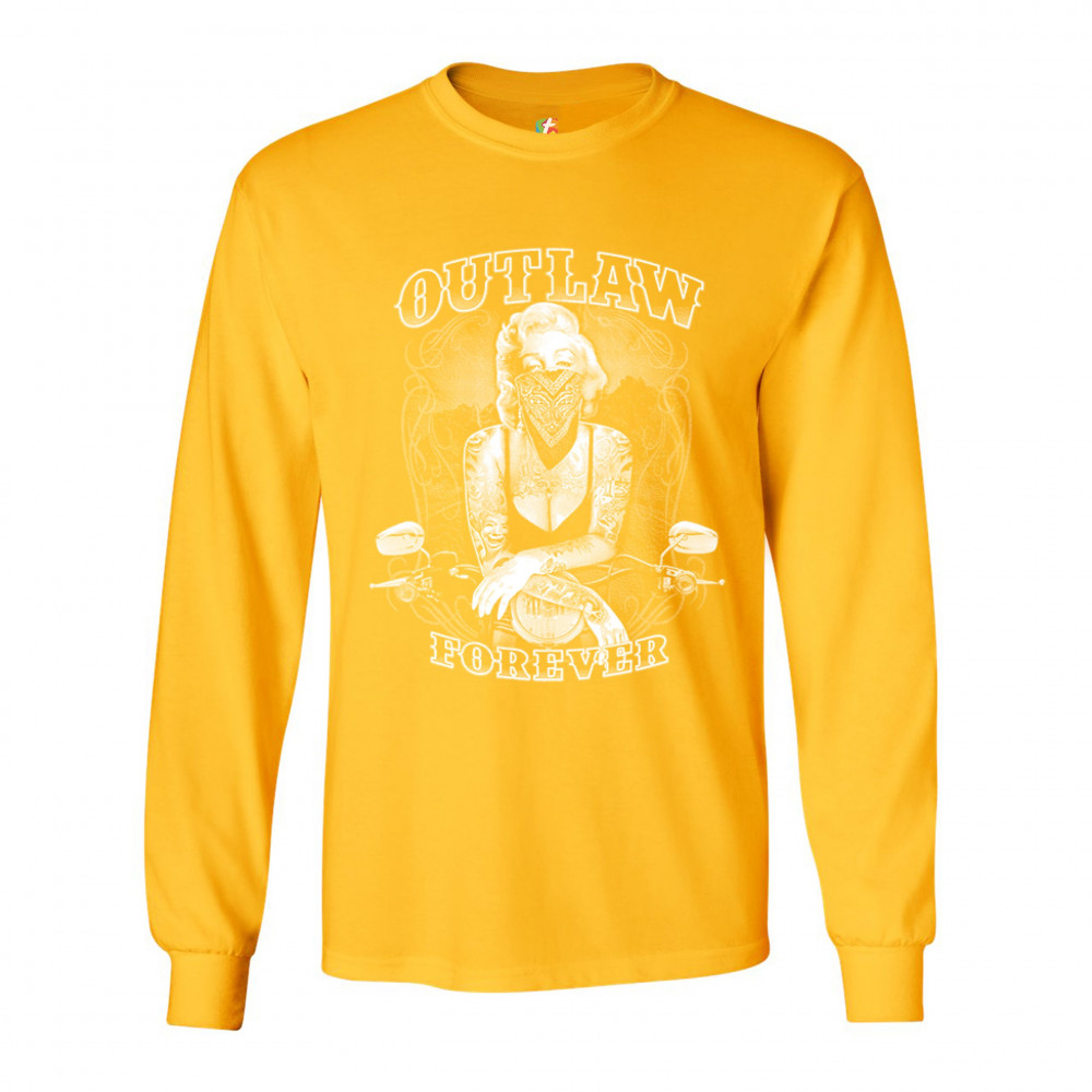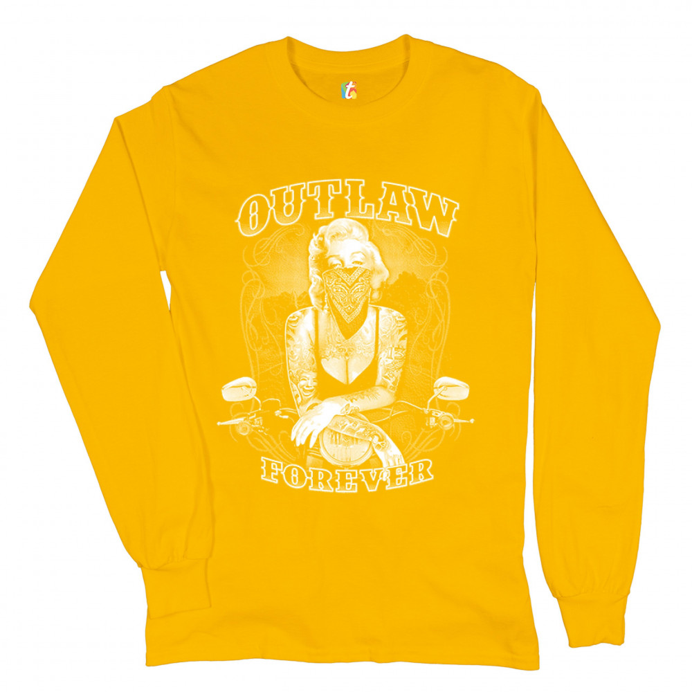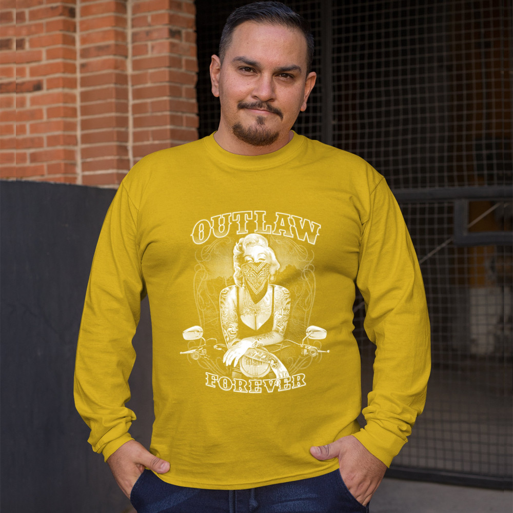 MARILYN MONROE OUTLAW FOREVER long sleeve t-shirt biker live to ride motorcycle yellow