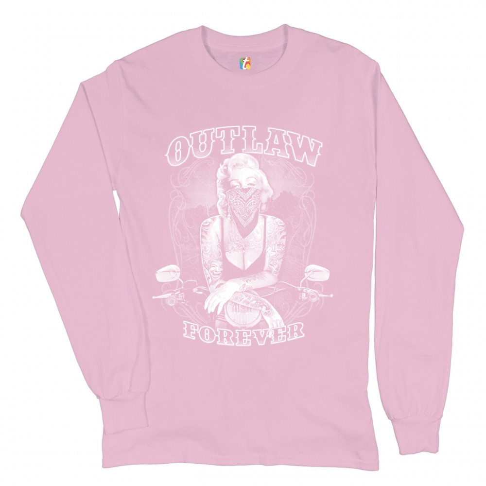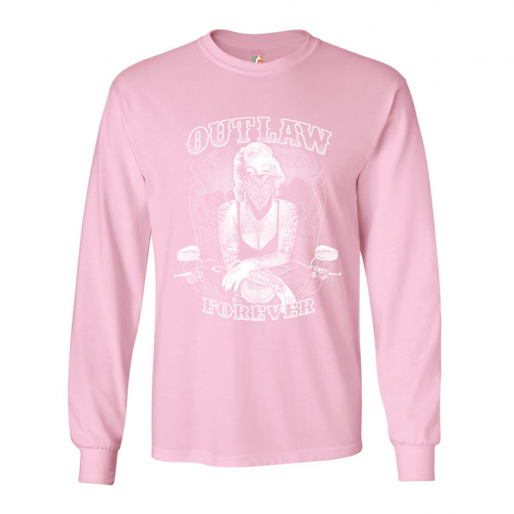 MARILYN MONROE OUTLAW FOREVER long sleeve t-shirt biker live to ride motorcycle pink