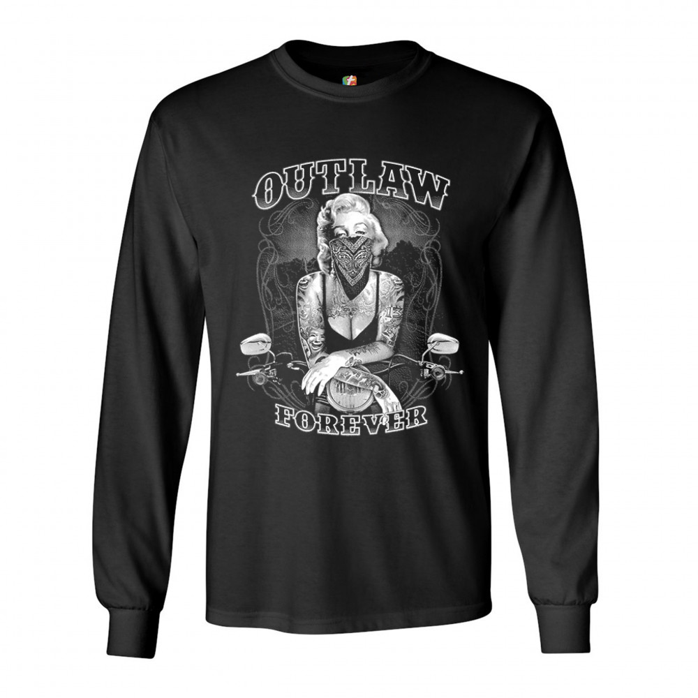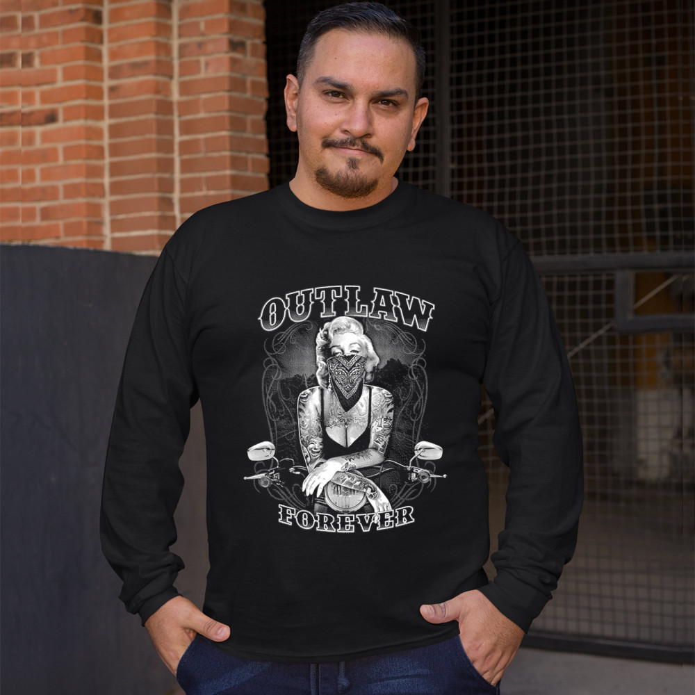 MARILYN MONROE OUTLAW FOREVER long sleeve t-shirt biker live to ride motorcycle black