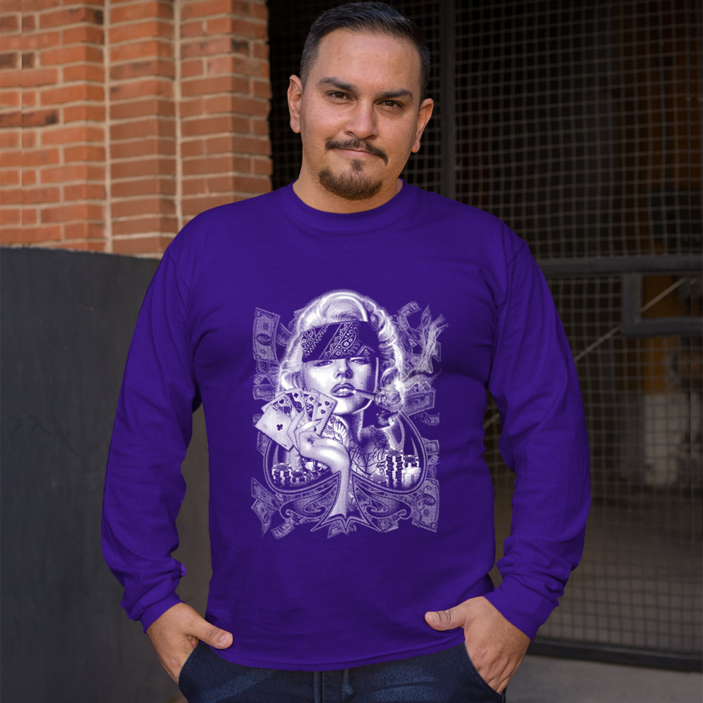 MARILYN MONROE PLAYING POKER SMOKING A JOINT long sleeve t-shirt 420 marijuana purple