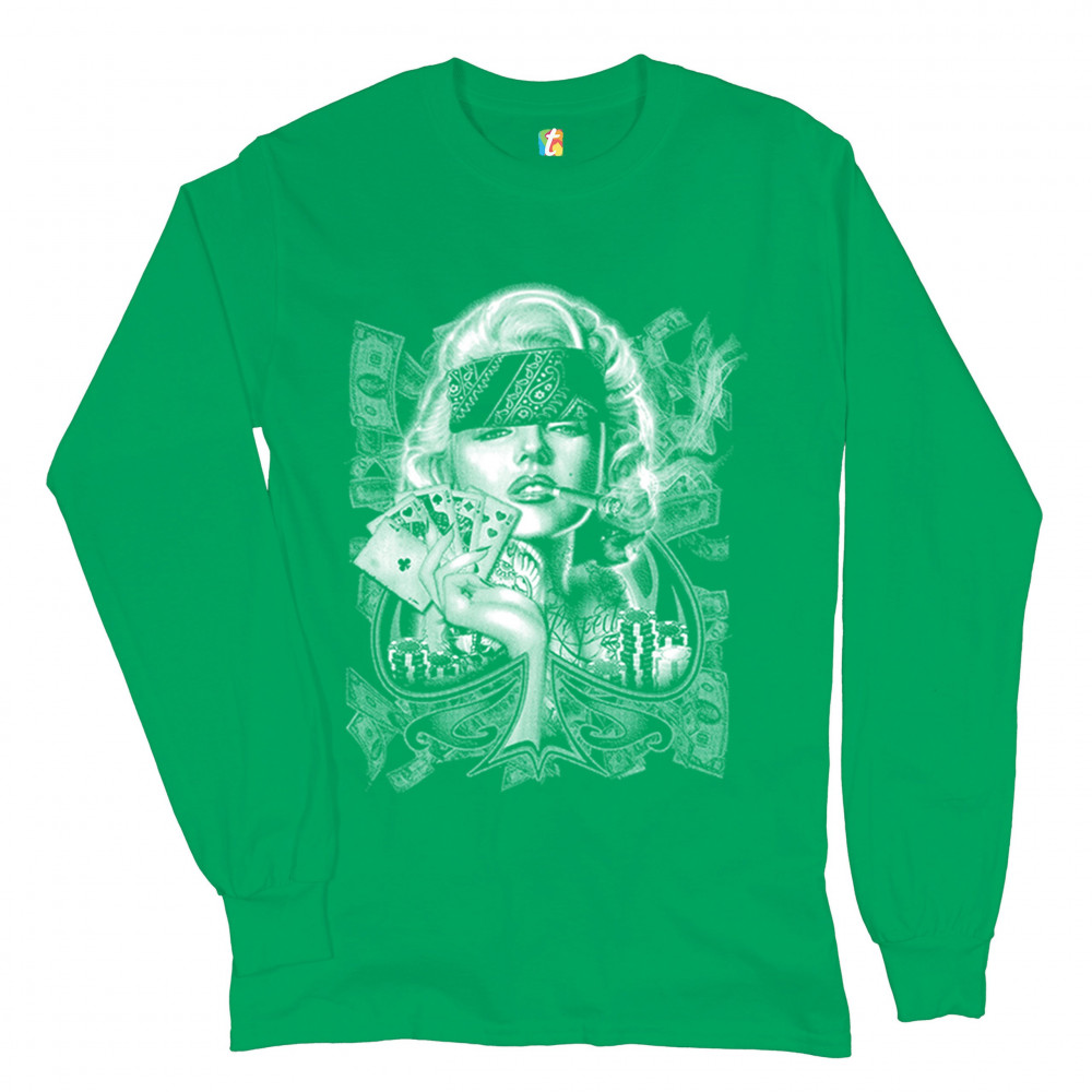MARILYN MONROE PLAYING POKER SMOKING A JOINT long sleeve t-shirt 420 marijuana green