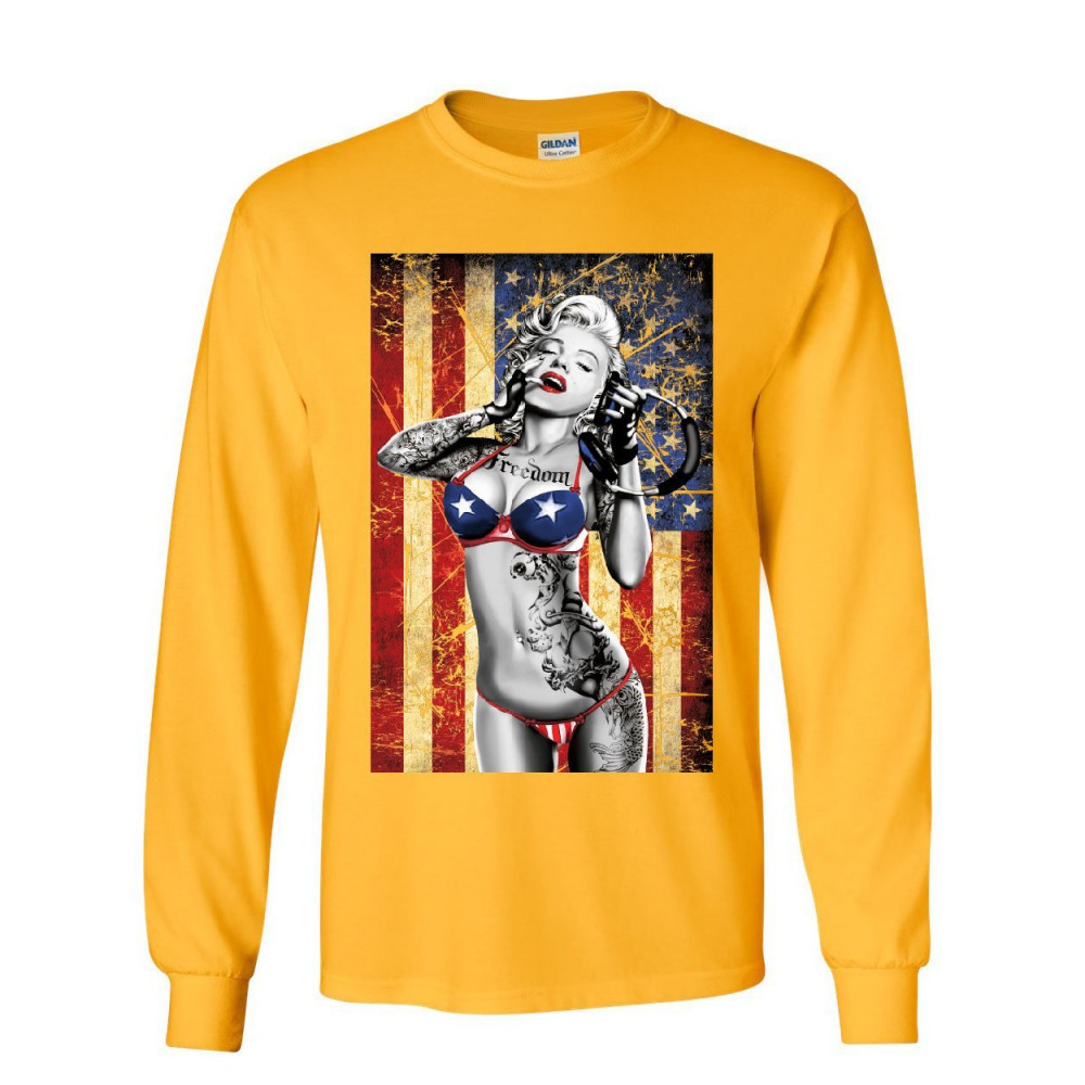 SEXY MARILYN MONROE US FLAG marilyn monroe us flag long sleeve t-shirt freedom sexy girl tattoos gangsta tee yellow
