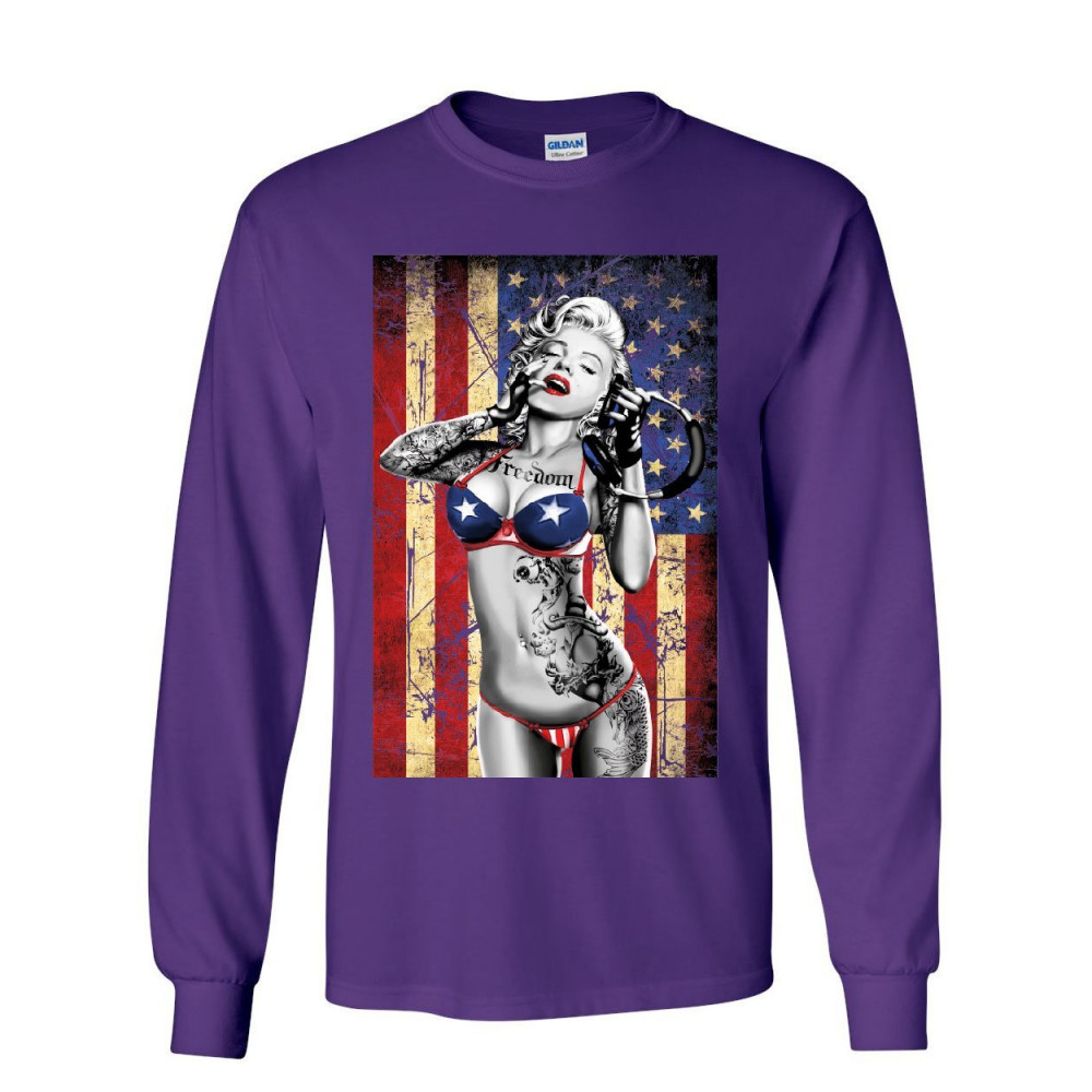 SEXY MARILYN MONROE US FLAG marilyn monroe us flag long sleeve t-shirt freedom sexy girl tattoos gangsta tee purple