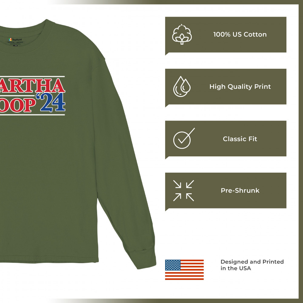 Elevate your casual wardrobe with our "Martha Snoop '24" design, a perfect mix of humor and pop culture. Ideal for fans of the iconic duo, this design merges political satire with entertainment flair. Crafted from premium materials, it ensures comfort and durability. Wear it to parties, casual outings, or just at home to express your unique style and sense of humor. This graphic is a great conversation starter and a fantastic gift for friends and family who appreciate a good laugh and love for pop culture icons.